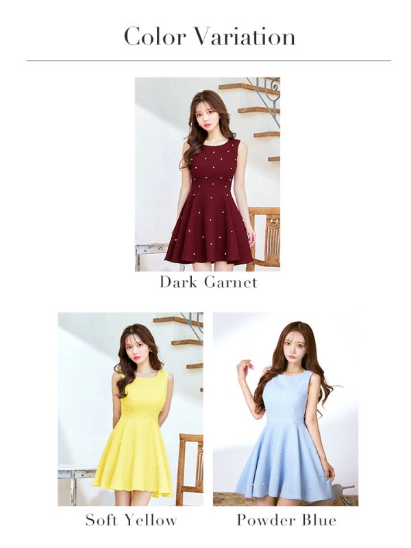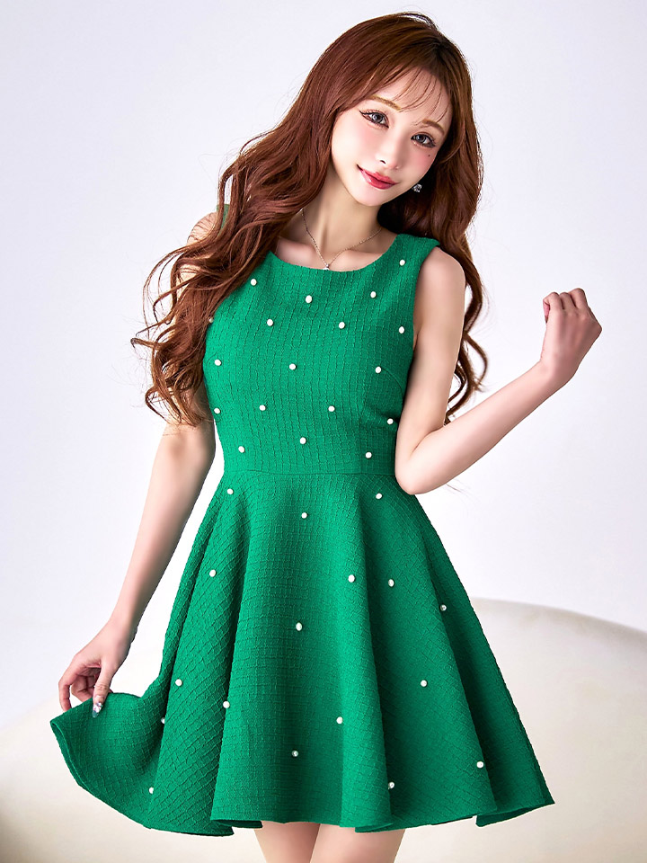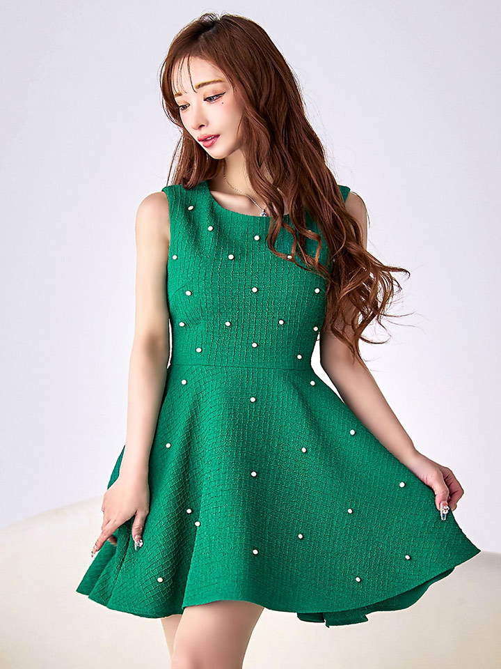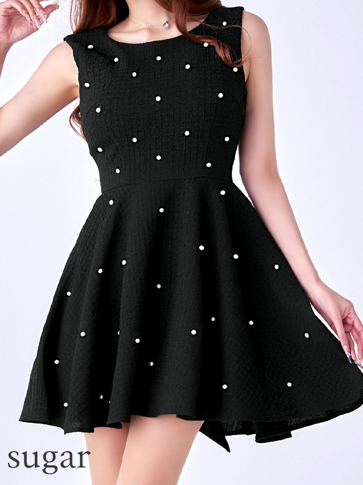 全体に散りばめられたパールが華やかなフレアミニドレス♡
