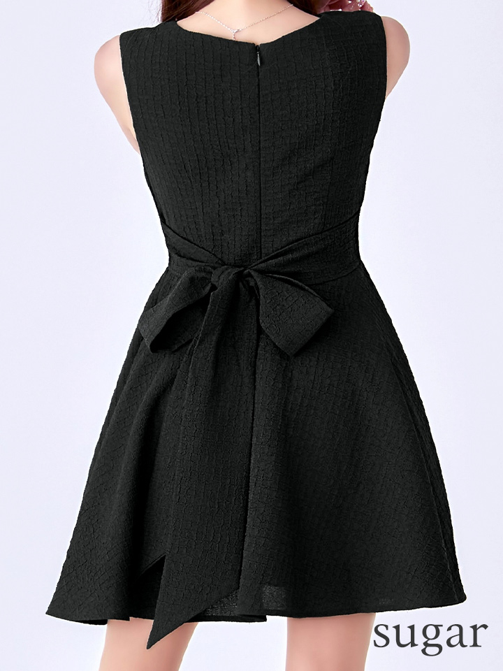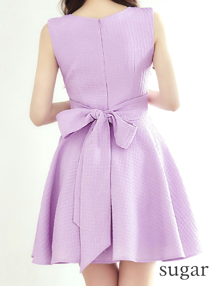 ノースリーブが上半身をスッキリ見せ、バックは大きめのリボンモチーフで後ろ姿まで可愛く演出◎