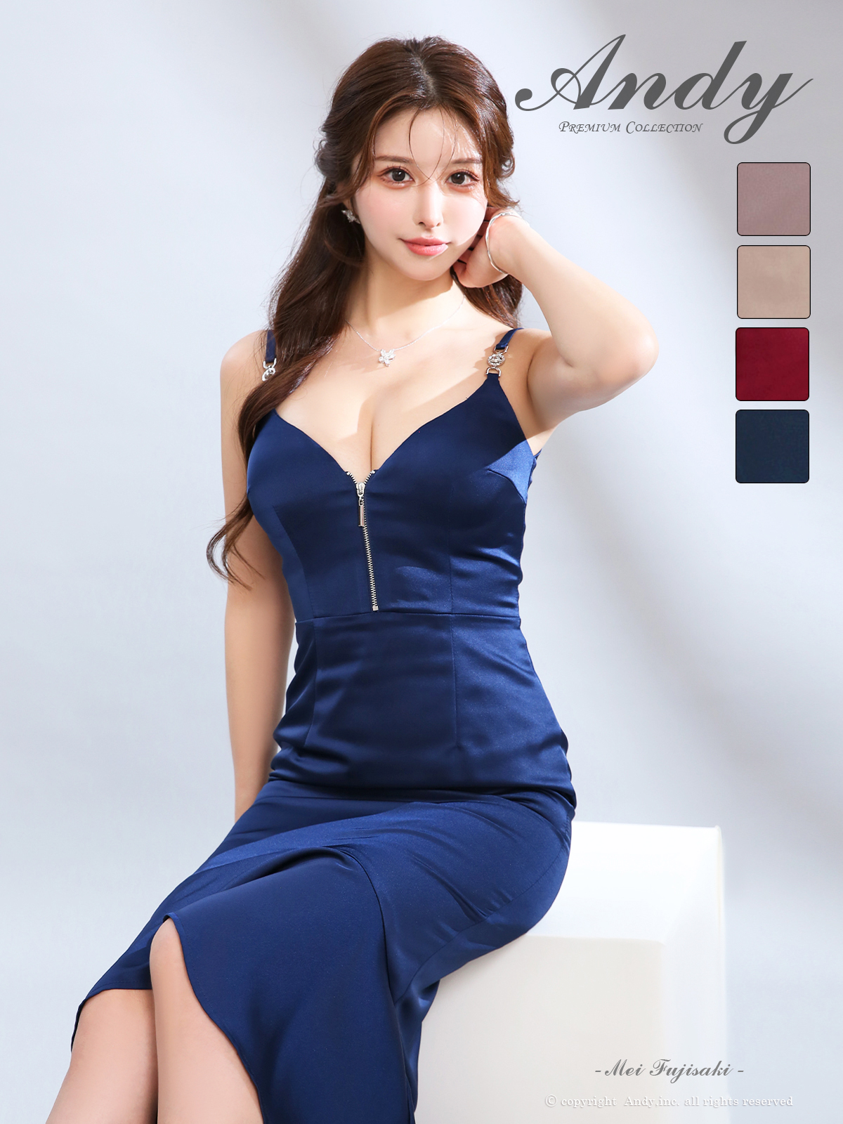 XSサイズあり【ANDY/アンディ】フロントジップ/ サテン/ キャミソール/ フリル/ テールカット/ ミディアムドレス/ キャバドレス[OF05] [ON3003-WR-2510]