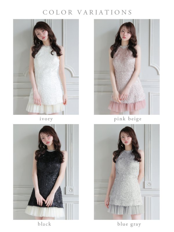 【予約商品/11月上旬発送予定】XSサイズあり【DEA./ディア】スパンコール/ フリンジ/ ハイネック/ フレア/ ミニドレス/ キャバドレス[OF08] [DE4135-B-2511]