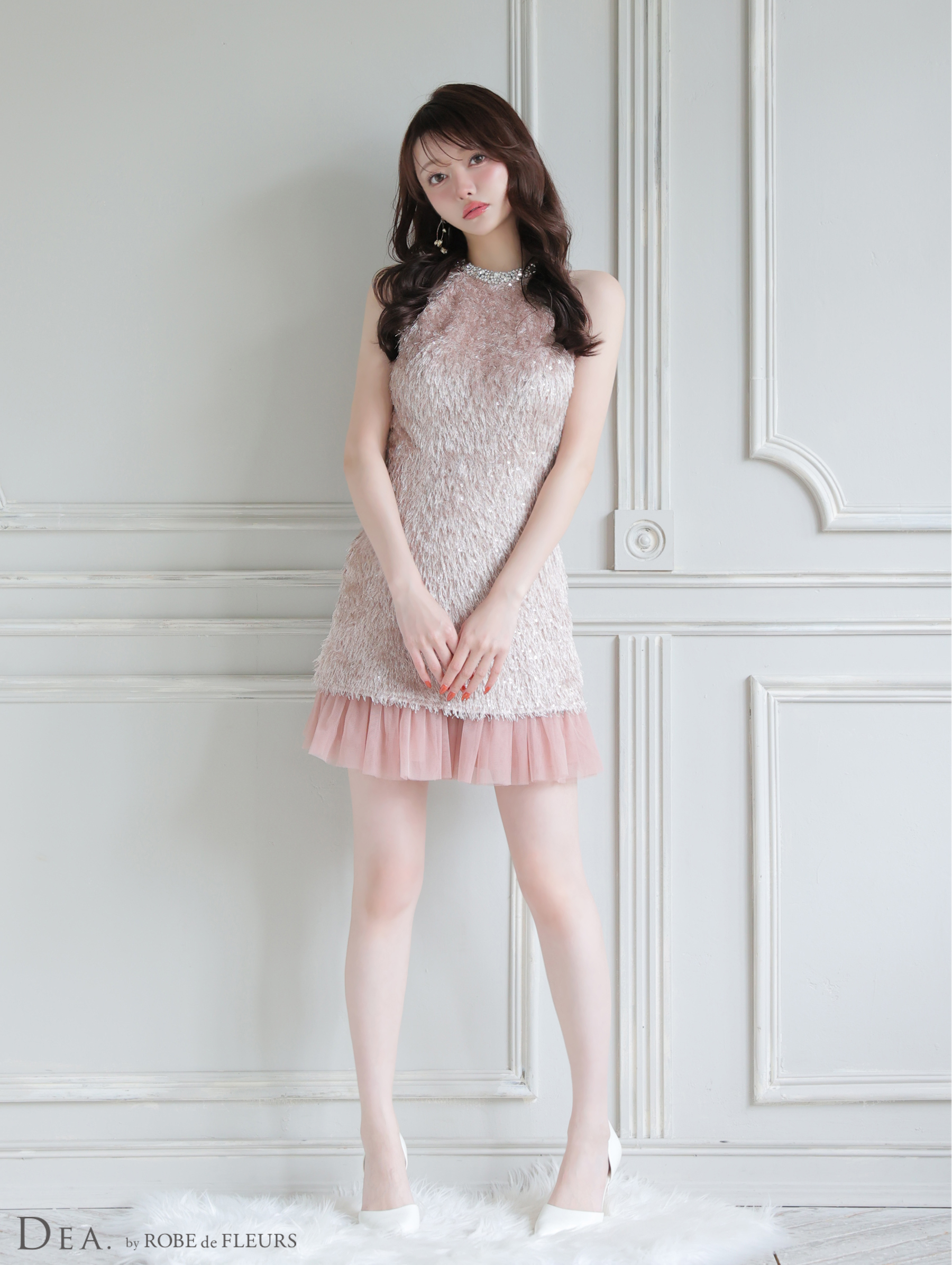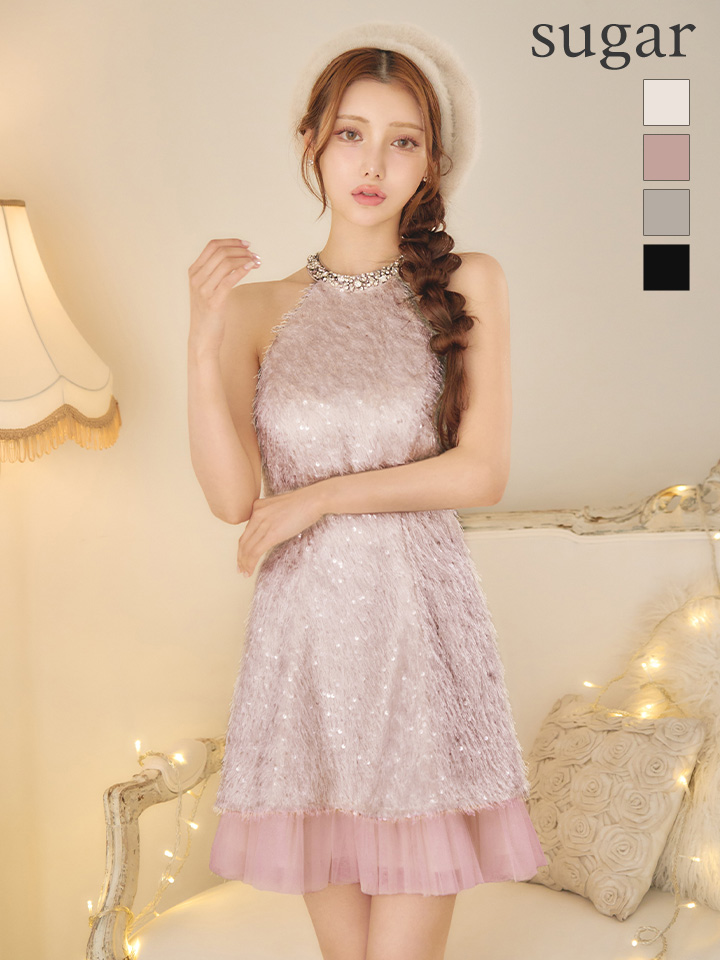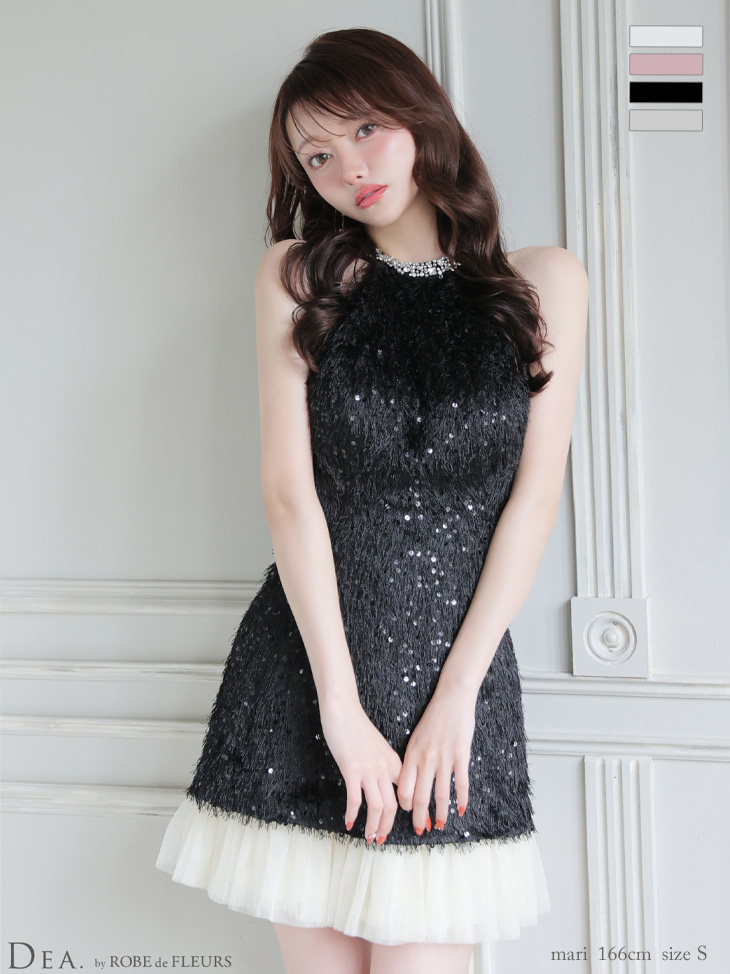 【予約商品/11月上旬発送予定】XSサイズあり【DEA./ディア】スパンコール/ フリンジ/ ハイネック/ フレア/ ミニドレス/ キャバドレス[OF08] [DE4135-PBE-S251101]
