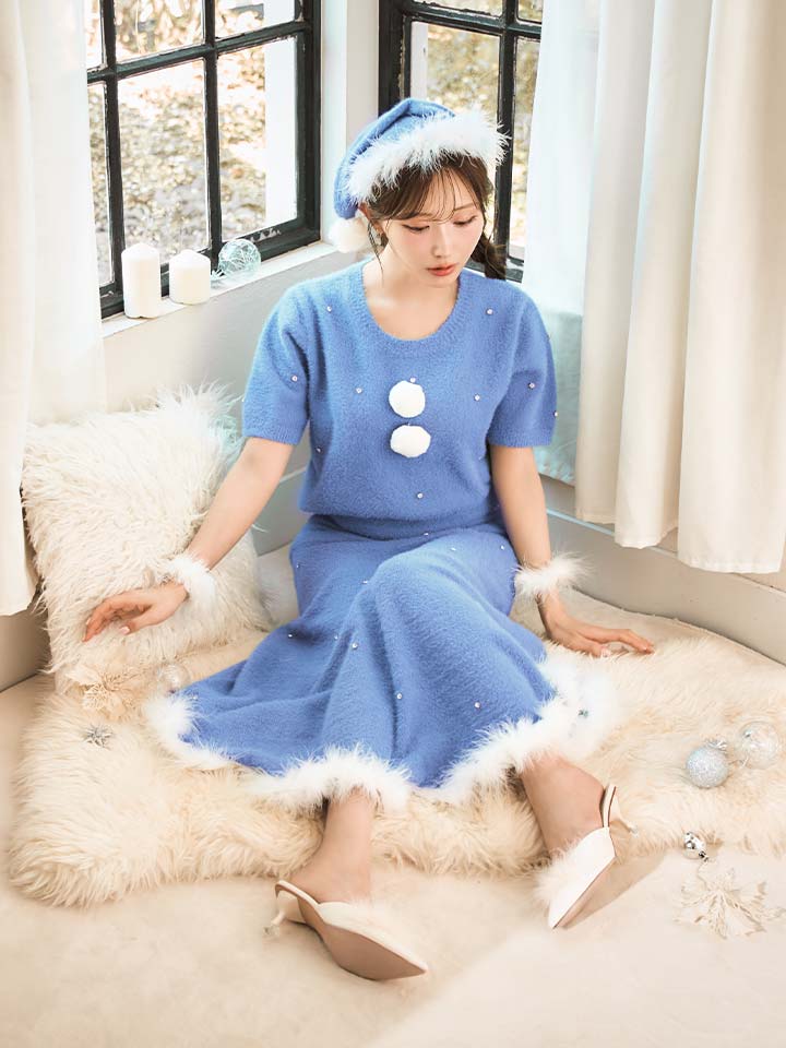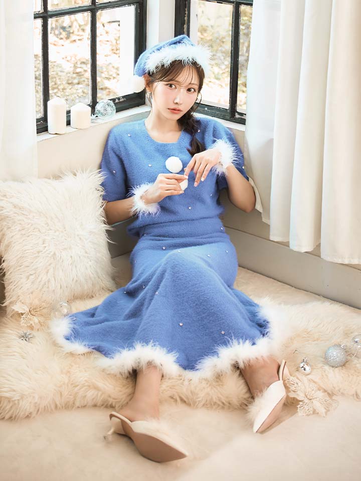 SALE!【サンタコス 5点セット】【S-Lサイズ/2カラー】ビジューニットワンピースサンタコスプレ[OF01] [SS-042-SB-dzw-BL-25YI]