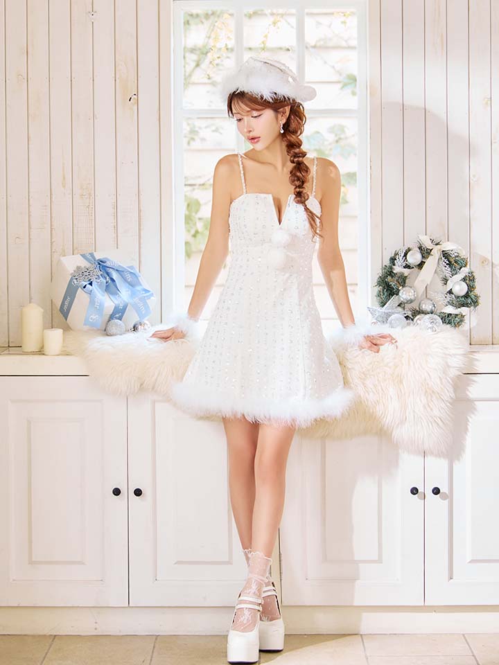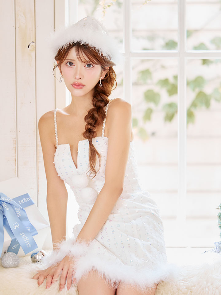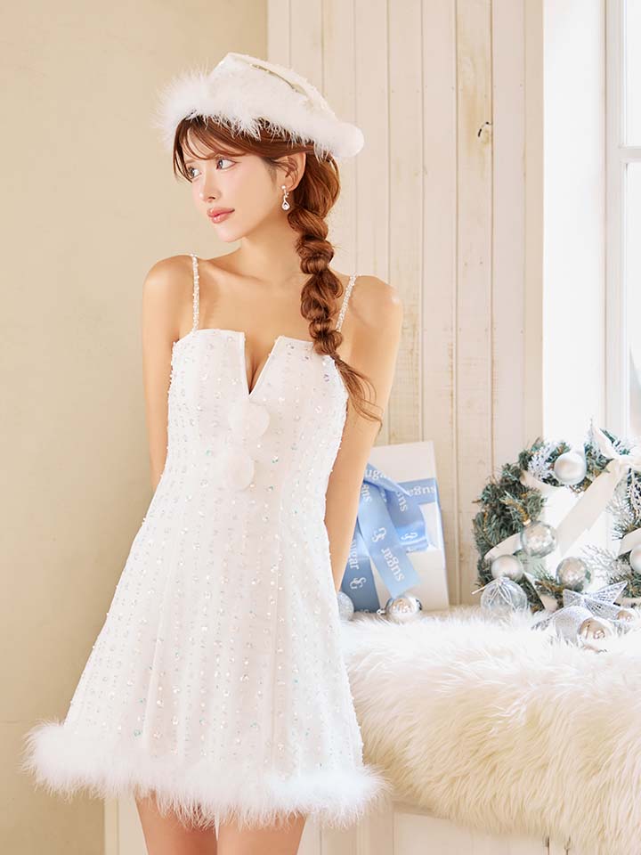 フレアスカート 白 ホワイト ミニ ノースリーブ ファー