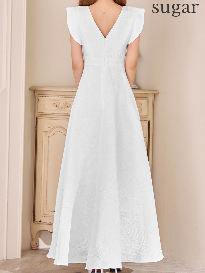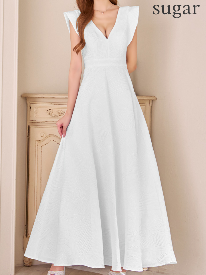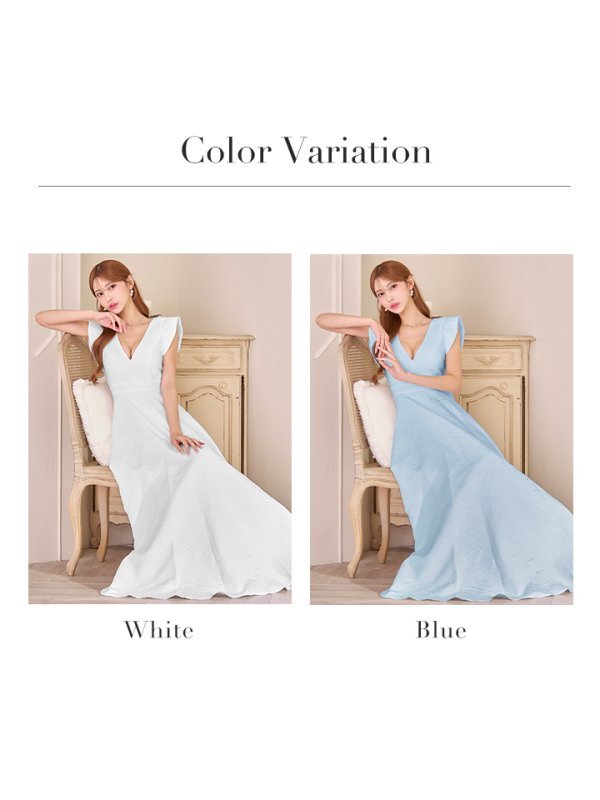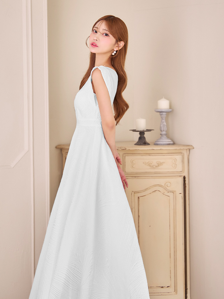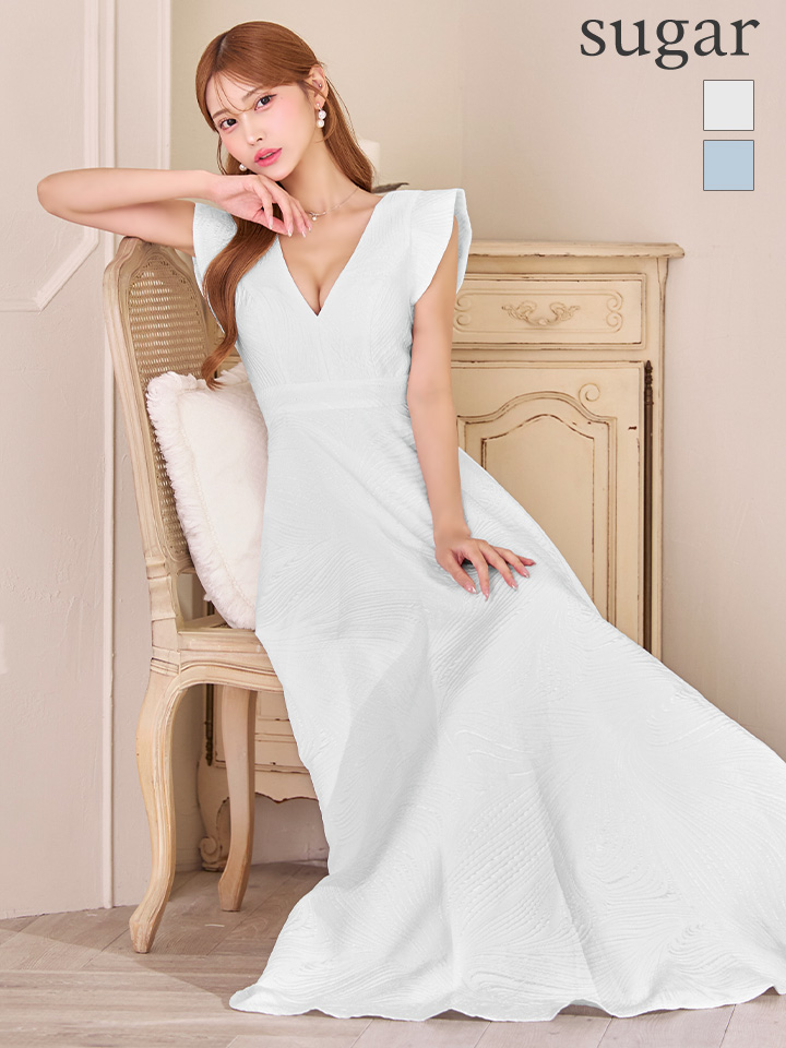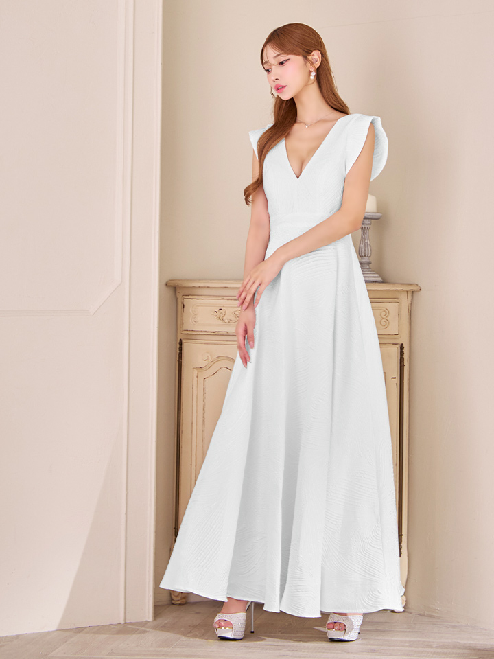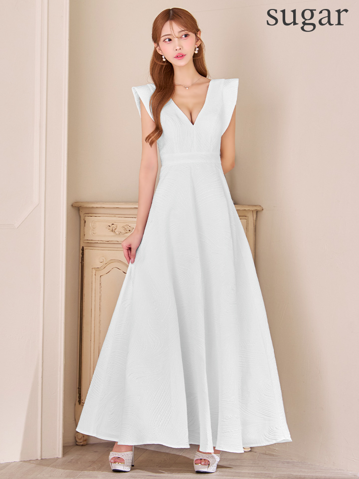 XS-Lサイズあり【SETTAN/セッタン】ワンカラー/ Vネック/ ジャガード/ Aライン/ ロング/ キャバドレス long[OF2] [LKS22106-W-S2511]