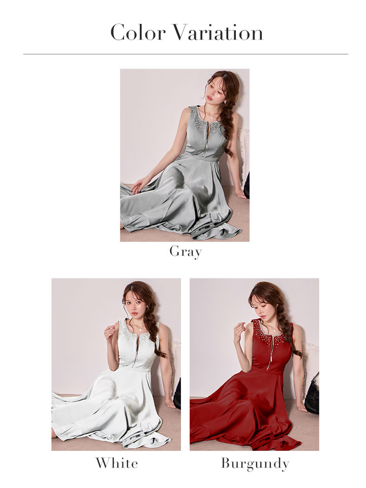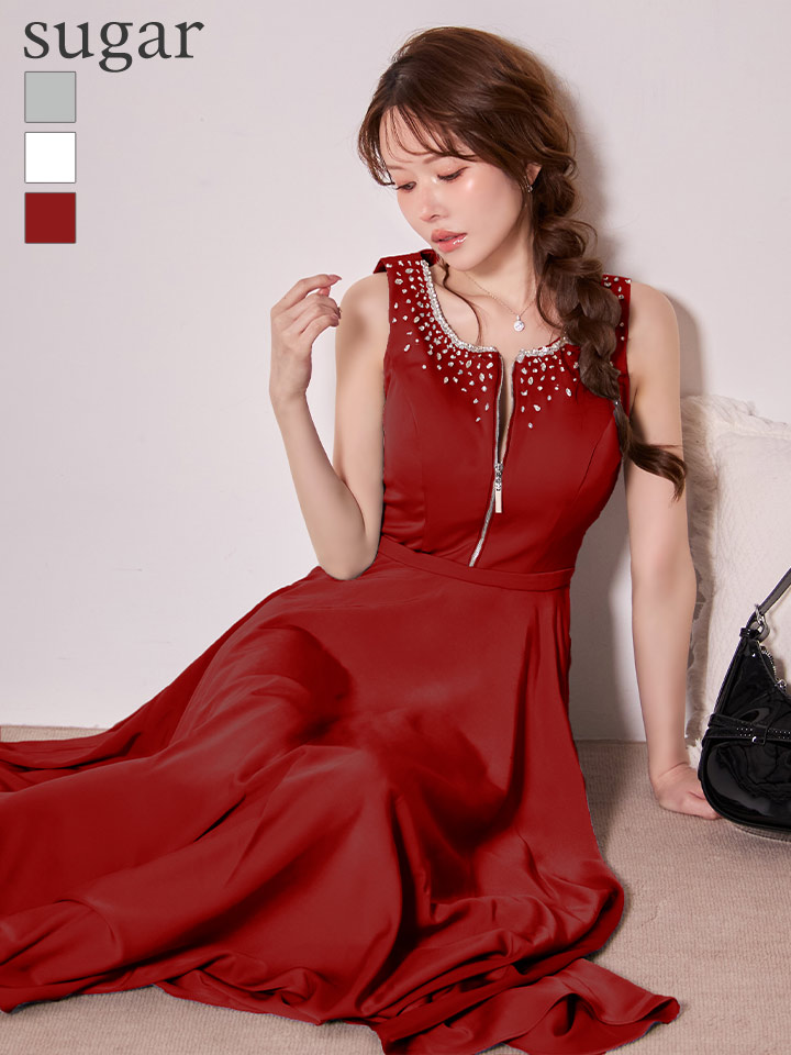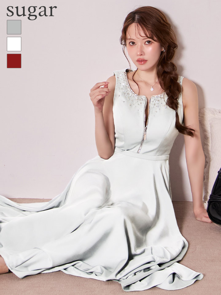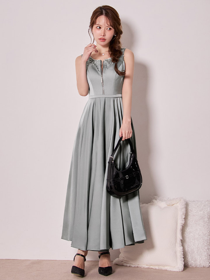 【予約商品/11月下旬発送予定】【JEAN MACLEAN/ジャンマクレーン】サテン/ ネックビジュー/ バストジップ/ ノースリーブ/ フレア/ ロングドレス/ キャバドレスlong[OF2A] [51968-JM-BGD-S251107]