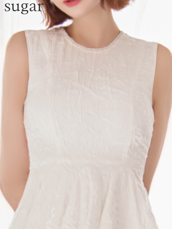 しわ加工が施された光沢生地が上品で印象的なフレアミニドレス♡