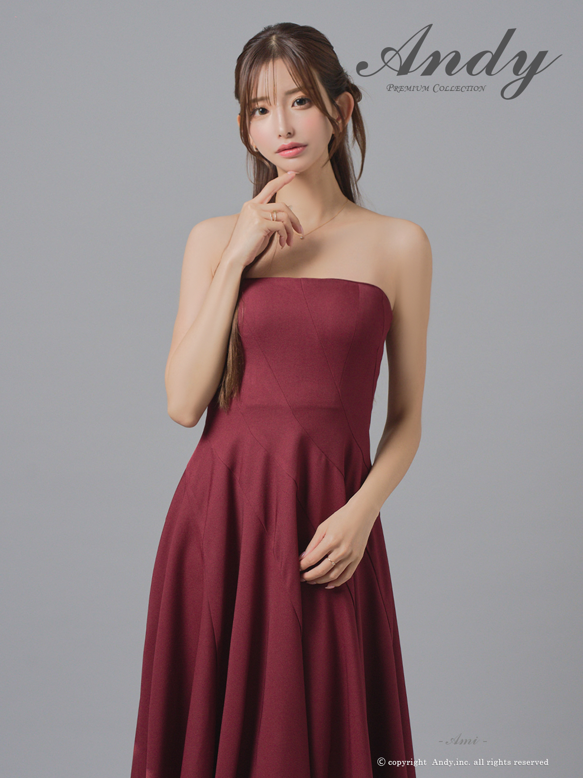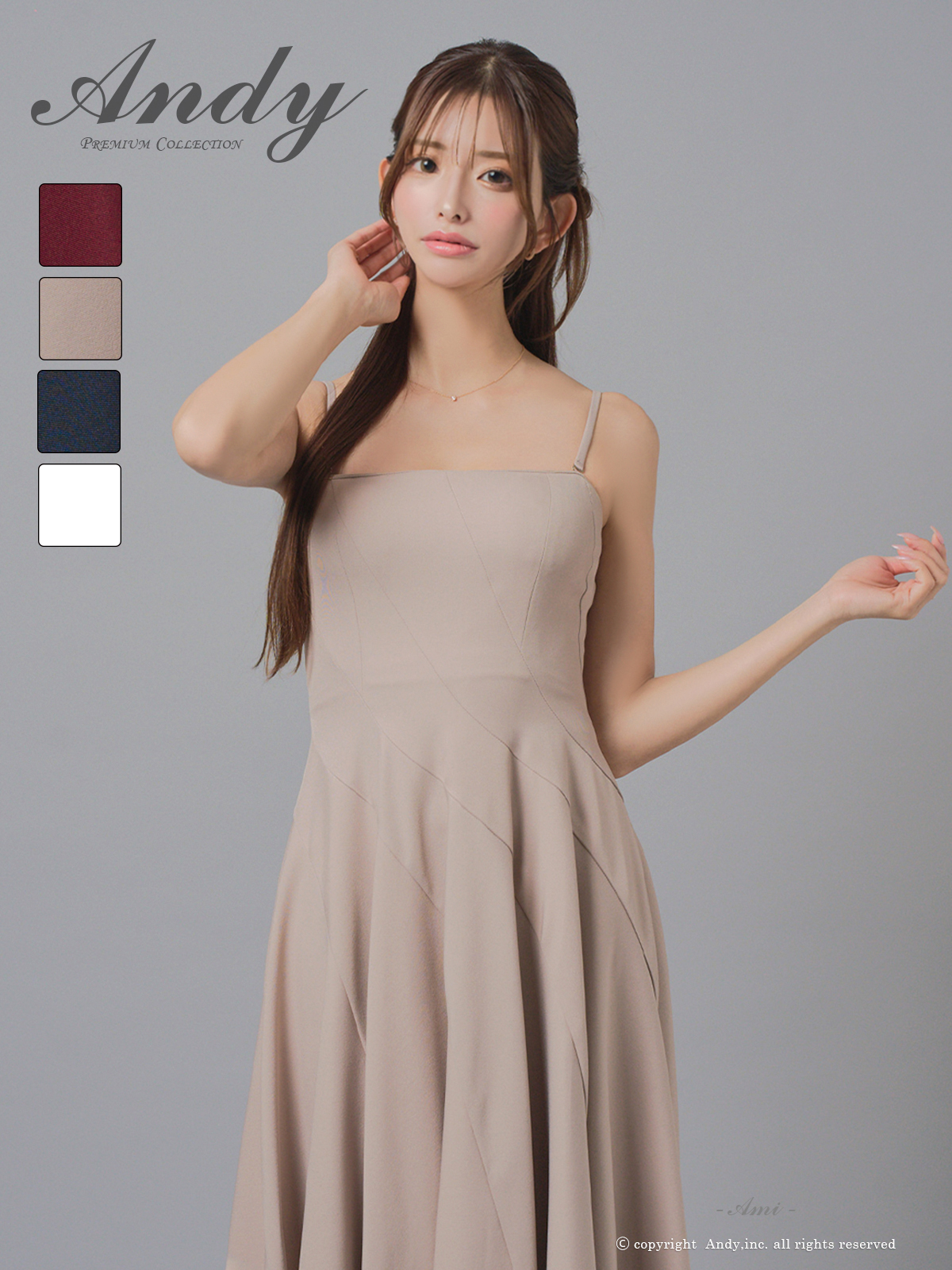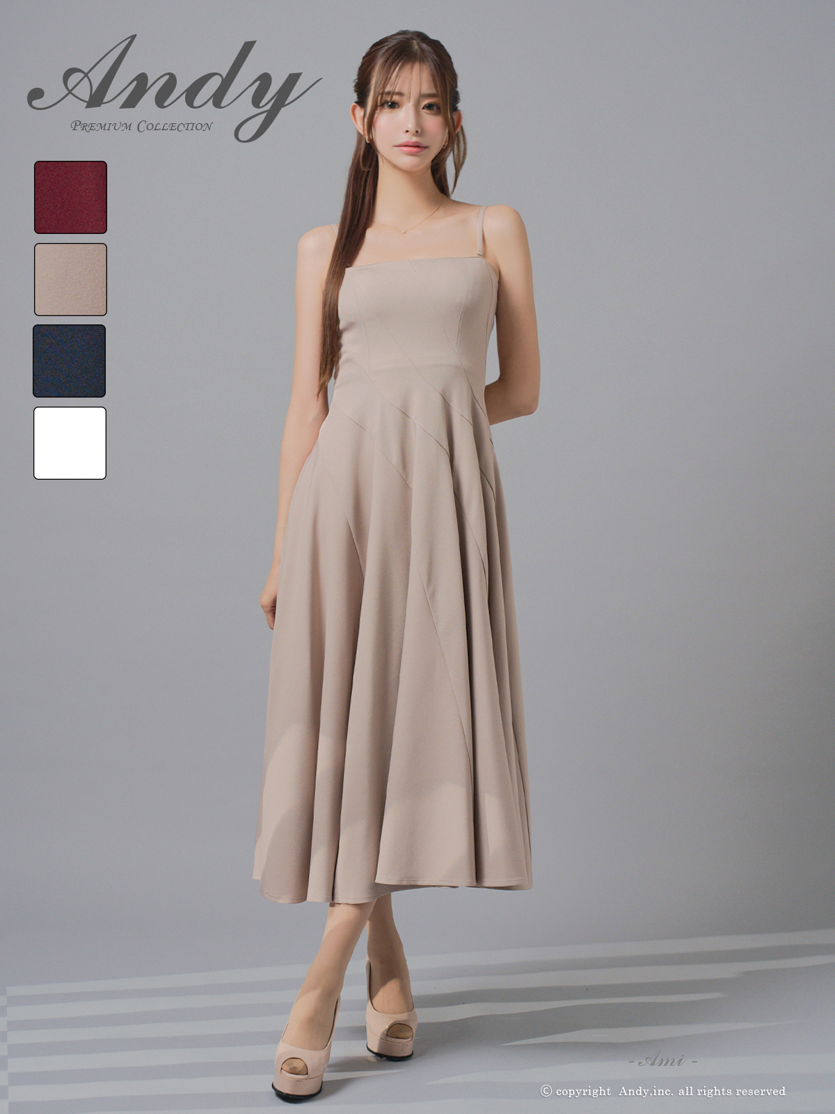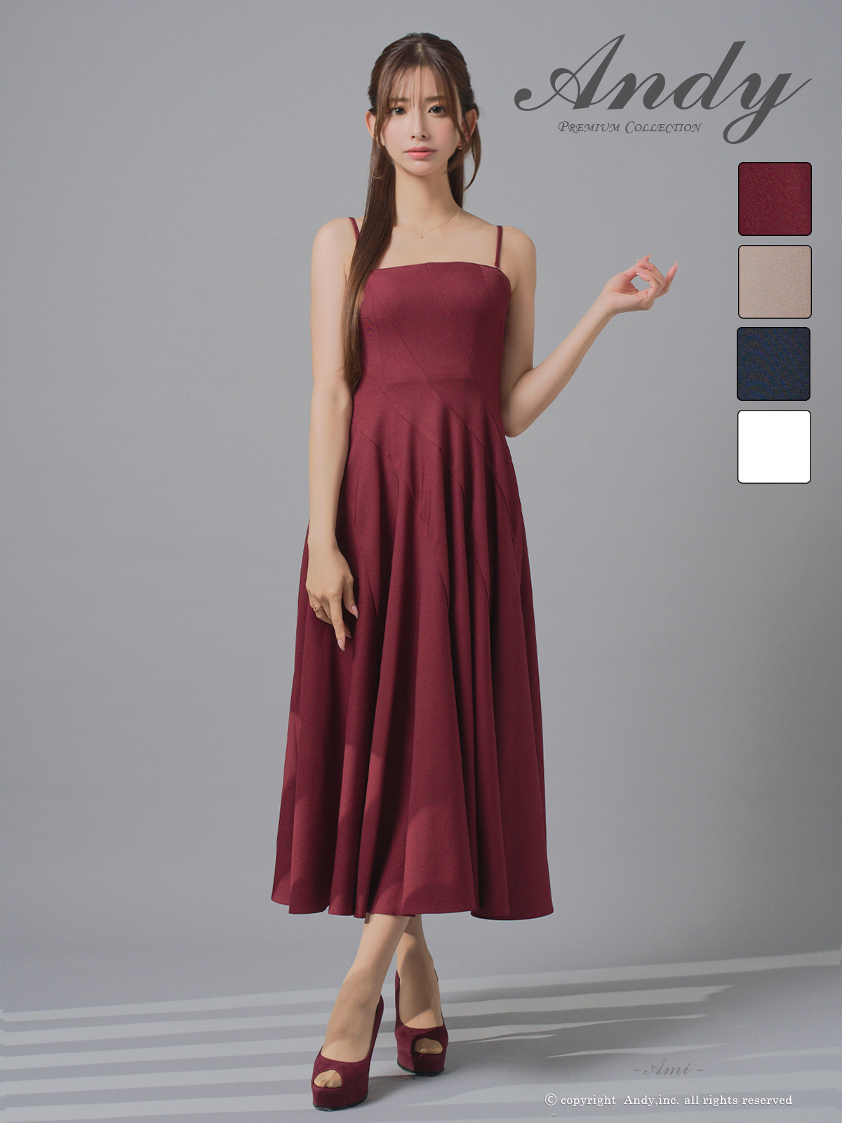 XSサイズあり【ANDY/アンディ】シンプル/ ワンカラー/ ストレッチ/ キャミ/ ベア/ フレア/ ミモレ丈/ ミディアムドレス/ ワンピース/ キャバドレス[OF05] [ON3025-WR-2511]