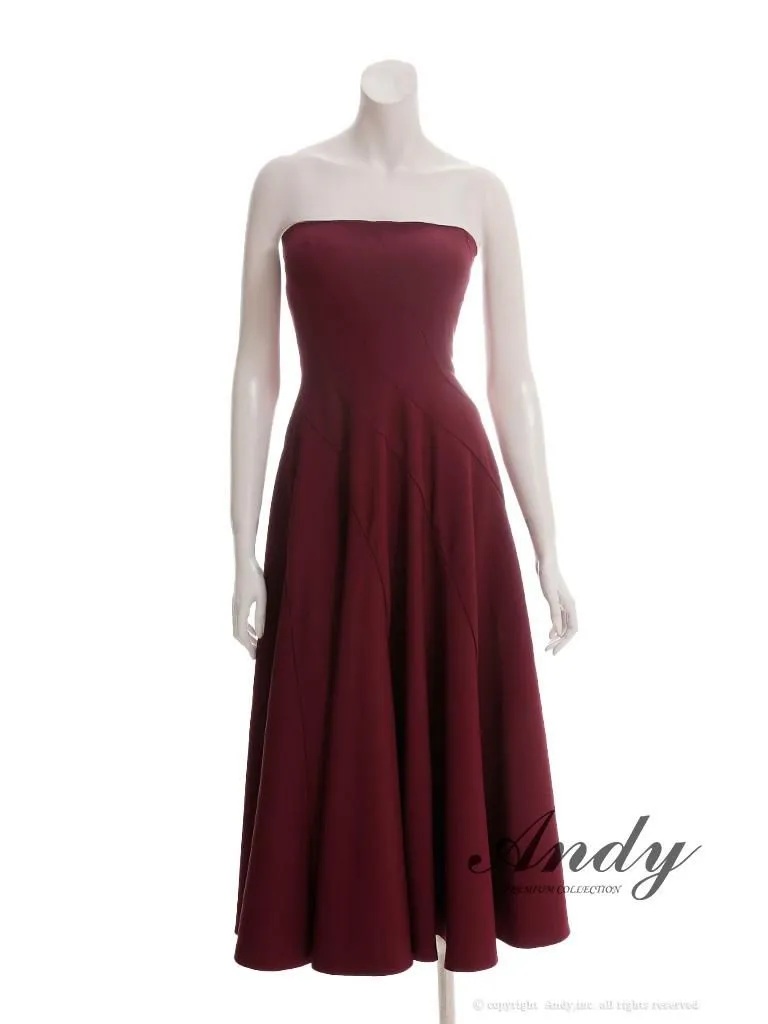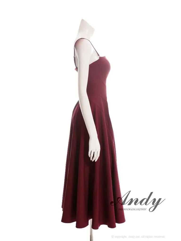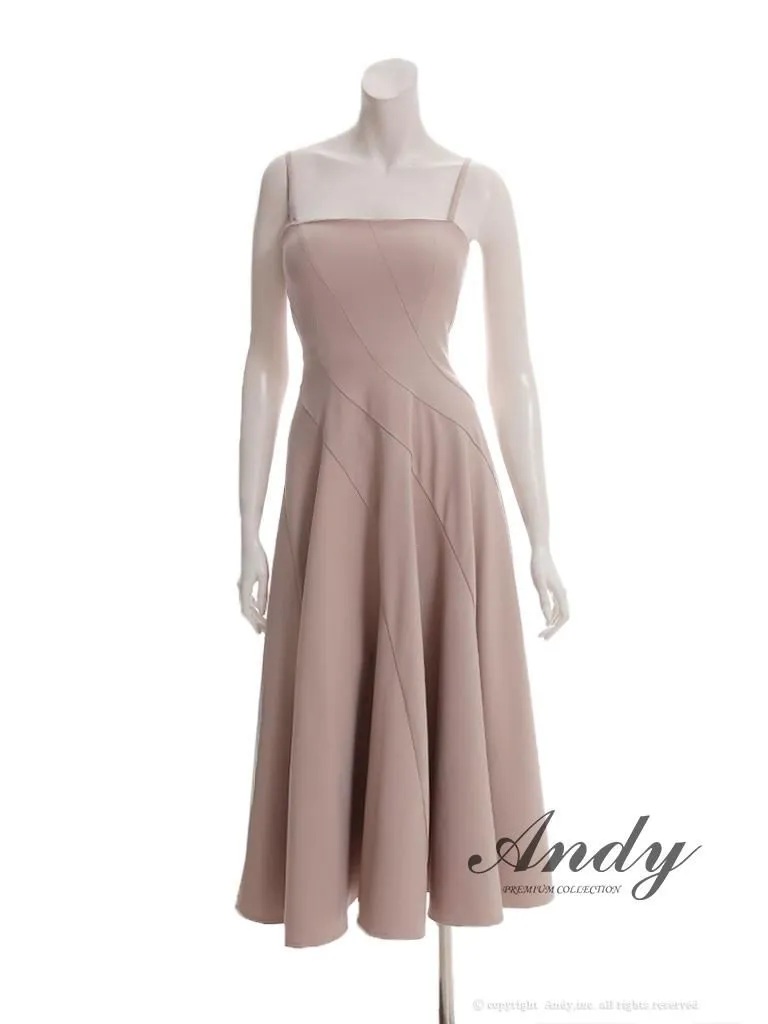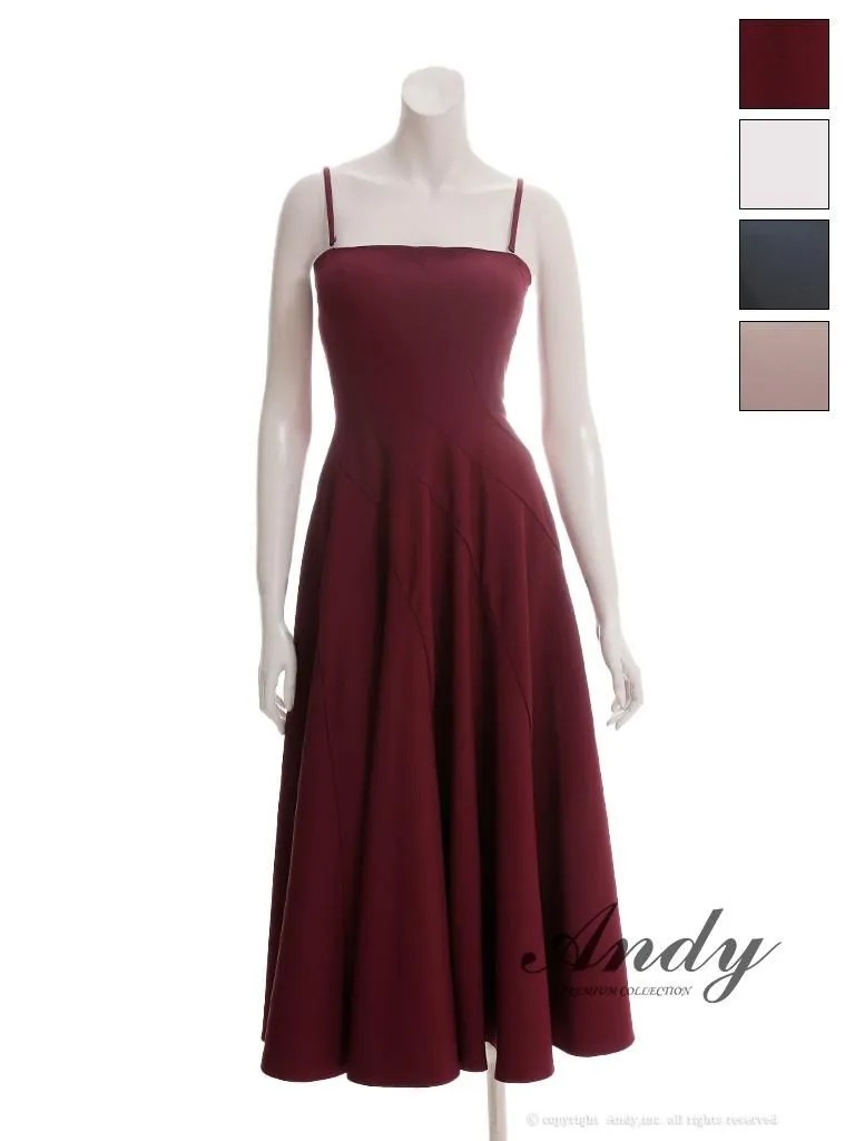 XSサイズあり【ANDY/アンディ】シンプル/ ワンカラー/ ストレッチ/ キャミ/ ベア/ フレア/ ミモレ丈/ ミディアムドレス/ ワンピース/ キャバドレス[OF05] [ON3025-BE-2511]