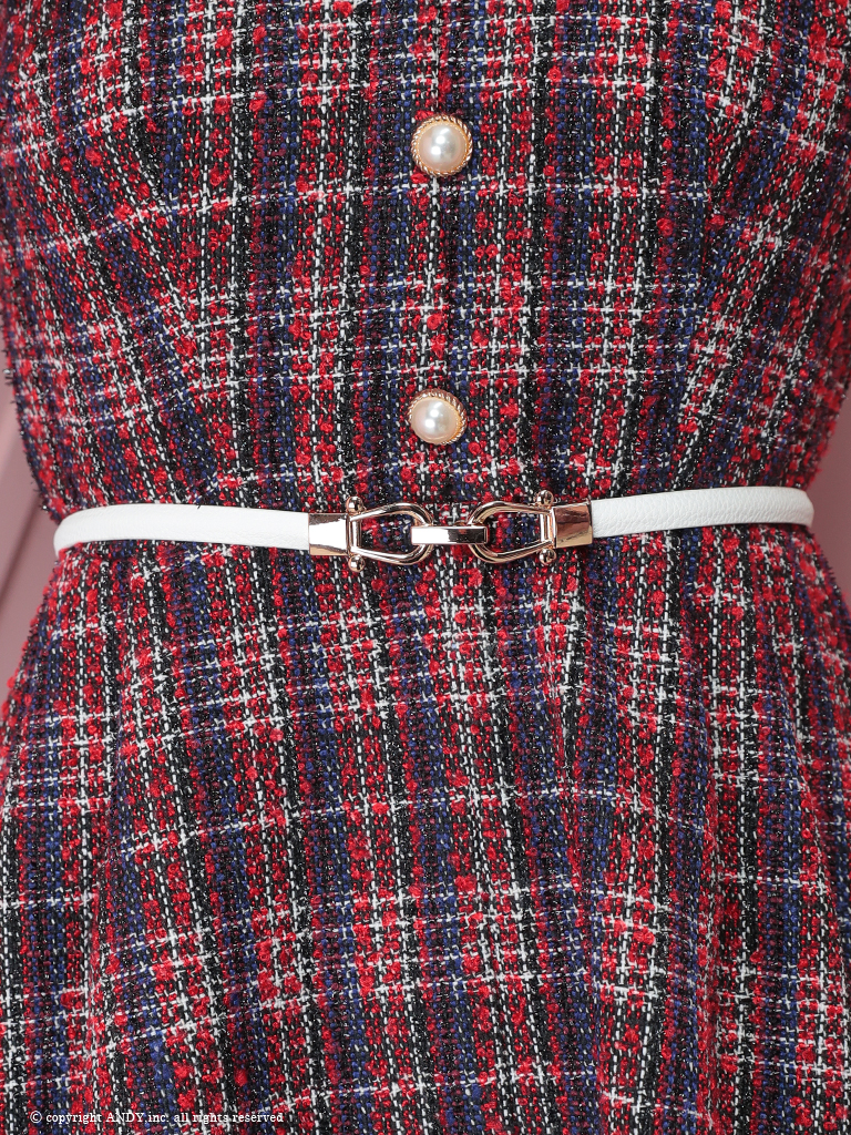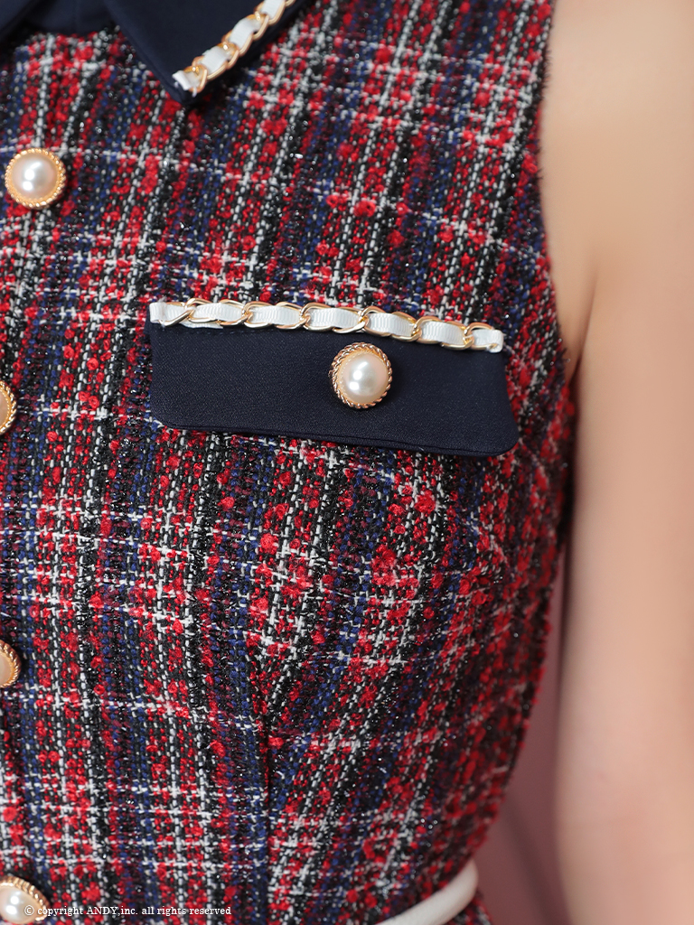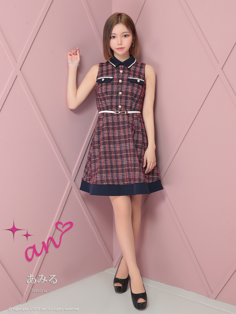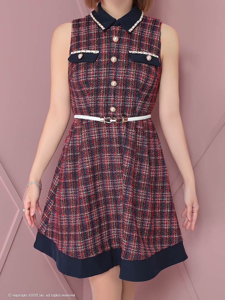 【an /アン】 チェックツイード/ 襟付き/ ベルト/ ノースリーブ/ ポケットデザイン/ フレア/ ミニドレス/ キャバドレス[OF05] [AOC3725-R-2511]