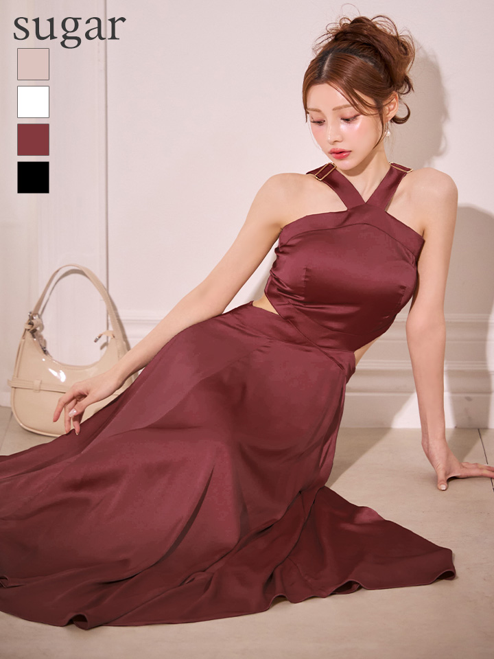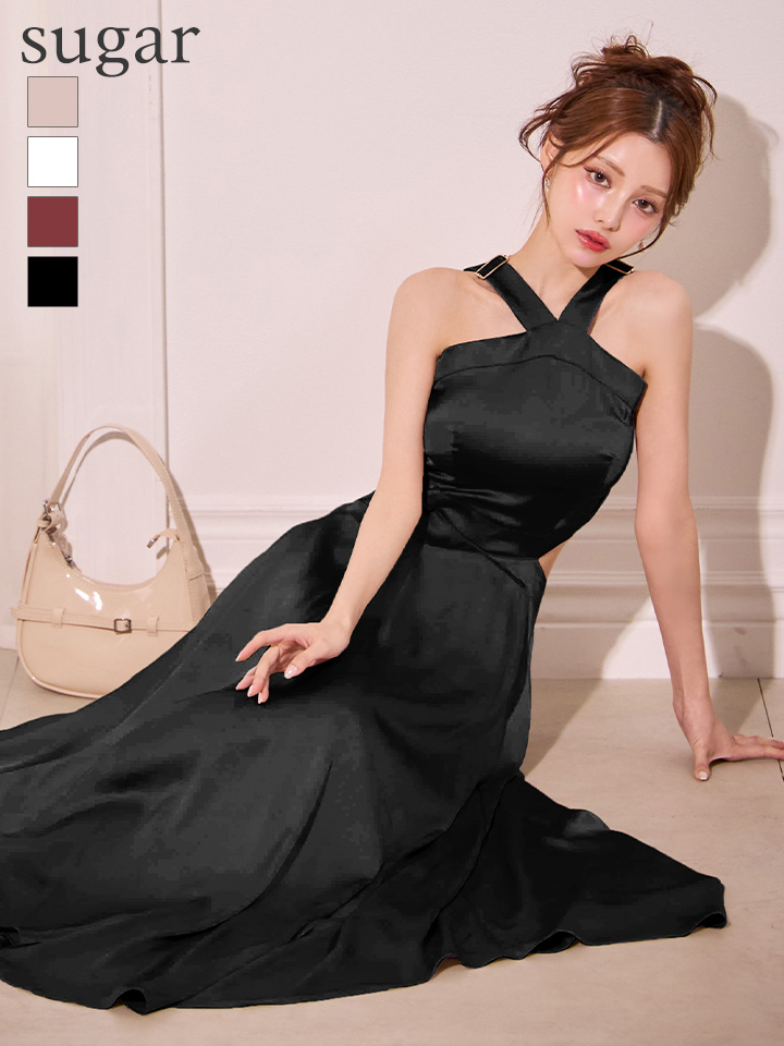 クロスホルターが大人の色気醸し出すロングドレス♡