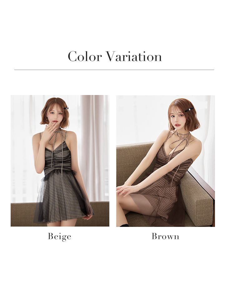 【予約商品/11月上旬-11月中旬発送予定】XSサイズあり【ANGEL R/エンジェルアール】クロスネック/ チェック/ レース/ フレア/ マイクロミニドレス/ キャバドレス[OF2] [AR25866-BR-S251110]
