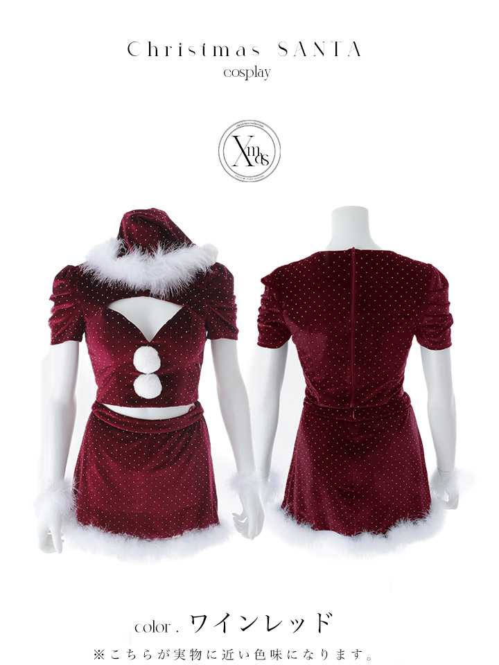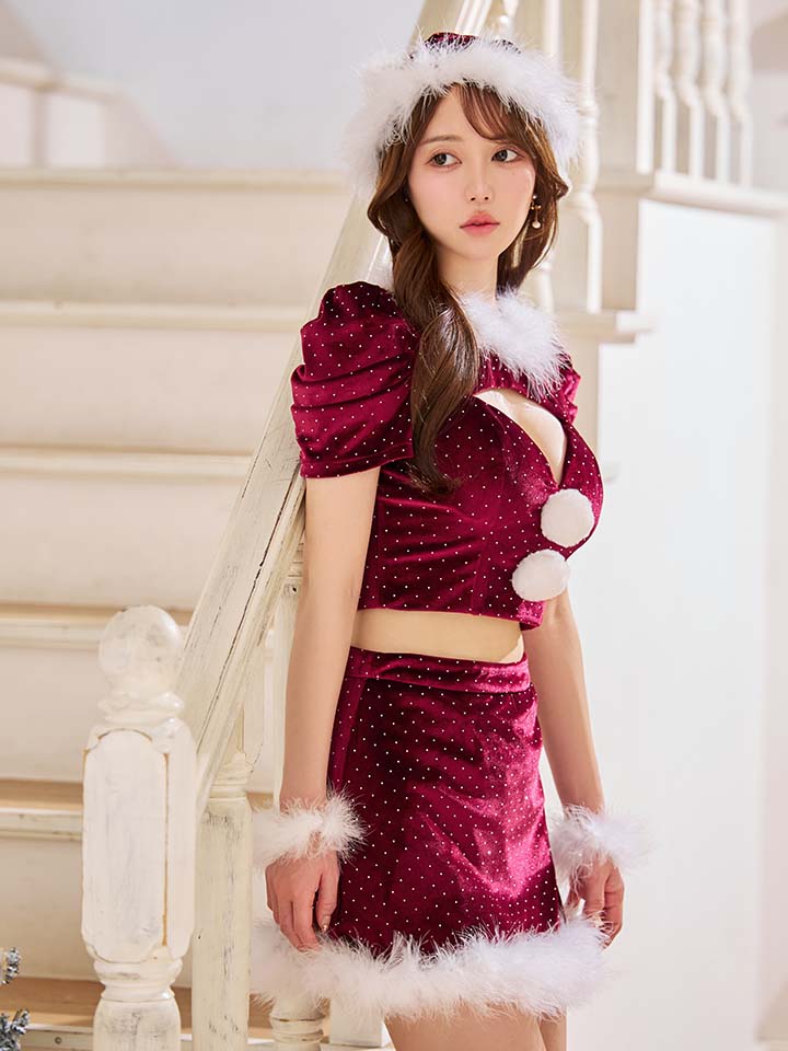 キラキラと輝くストーンを散りばめたセットアップサンタコスプレ♥