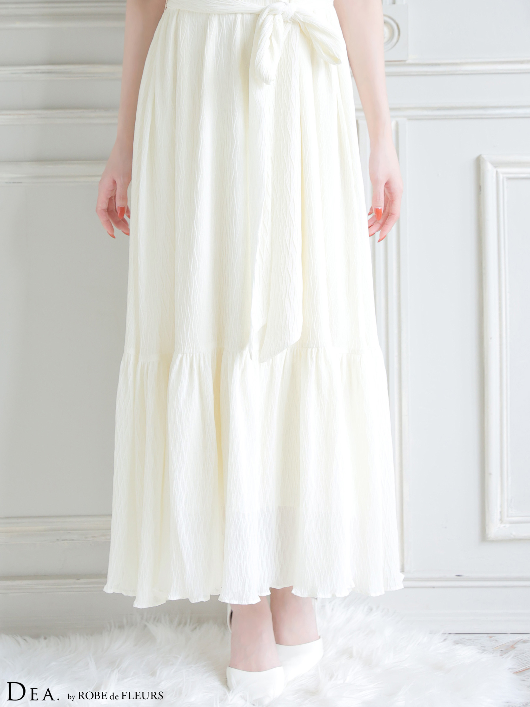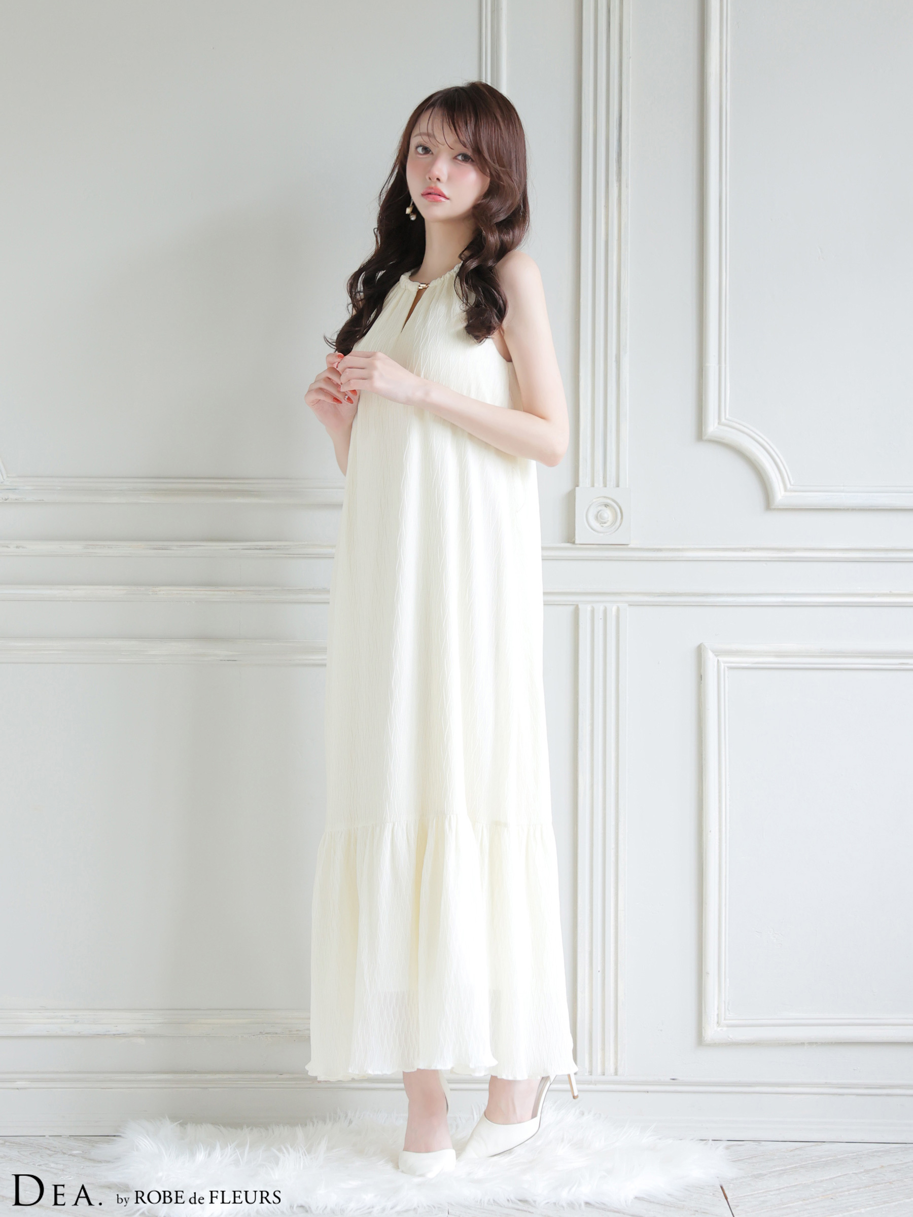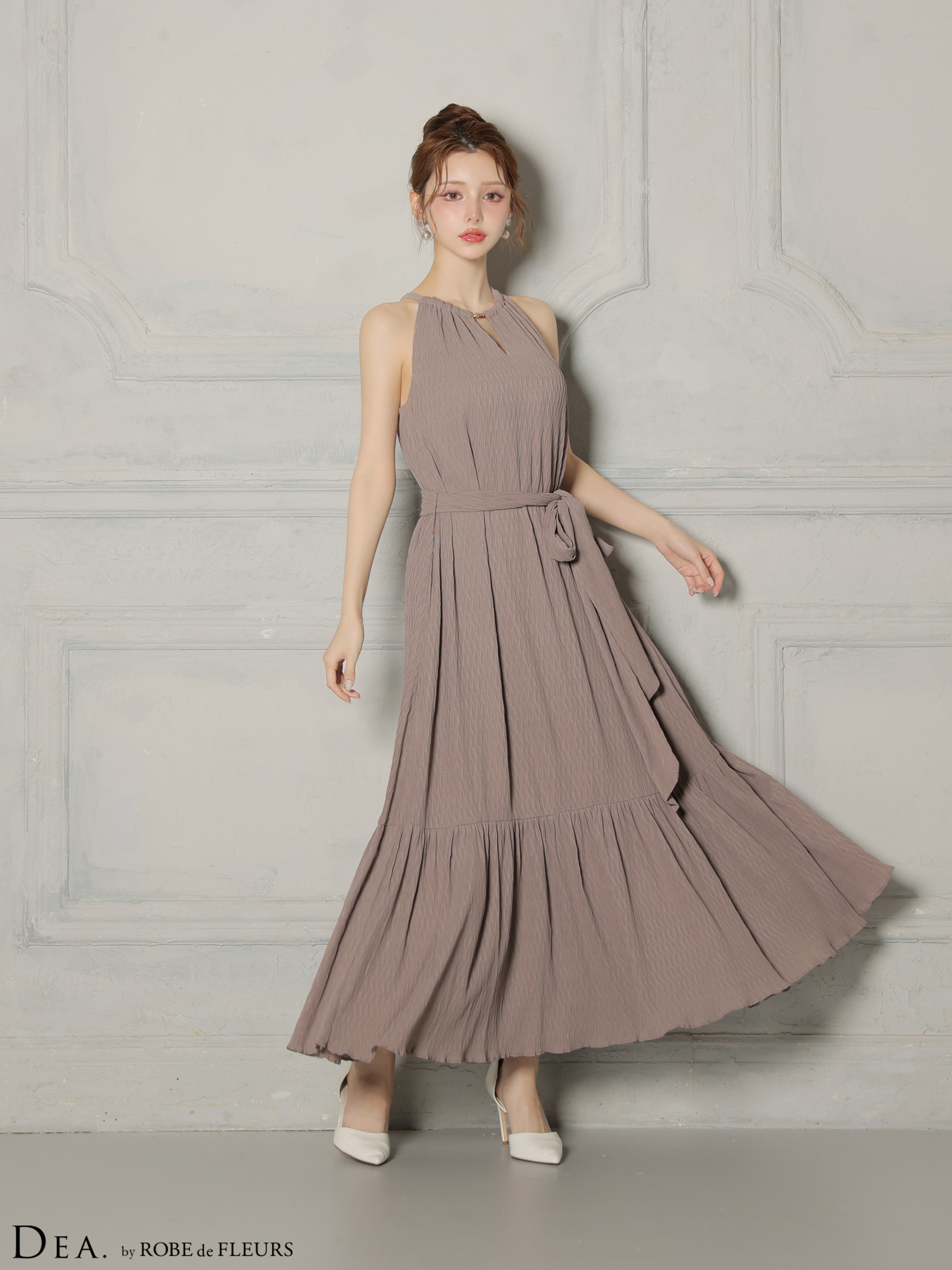 【DEA. by ROBE de FLEURS/ディアバイローブドフルール】軽やかでリラックス感のあるプリーツシフォンロングドレス。