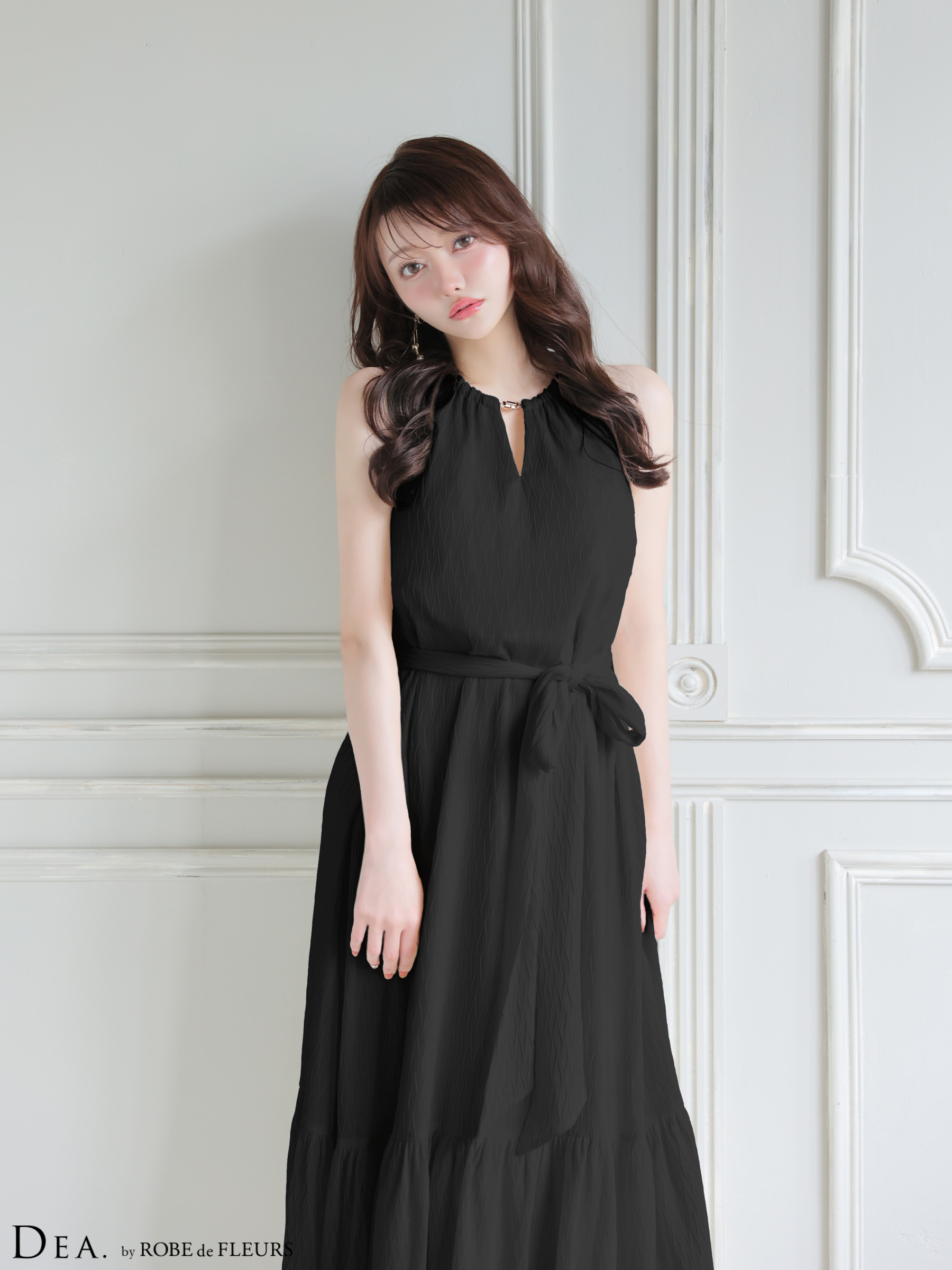 【予約商品/12月中旬発送予定】Lサイズあり【DEA./ディア】シフォン/ プリーツ/ Vネック/ ウエストリボン/ ロングドレス/ キャバドレス long[OF08] [DE4626-B-2511]