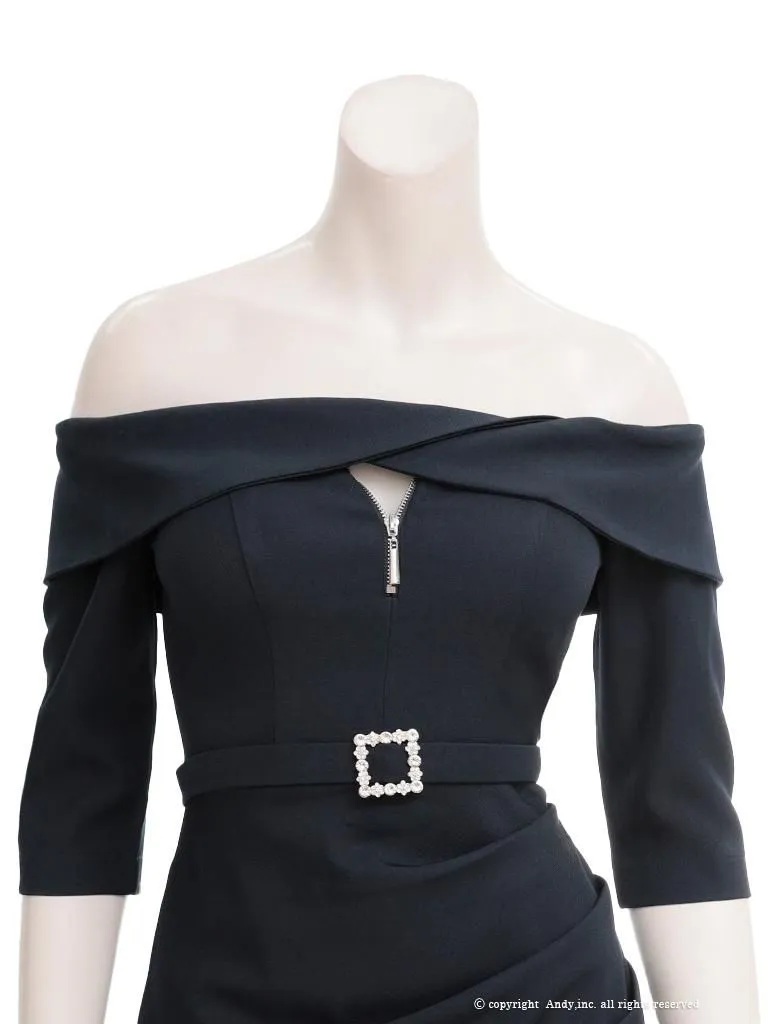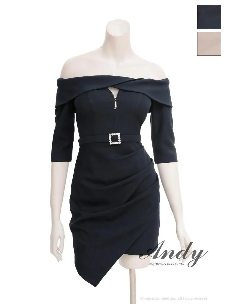 XSサイズあり【ANDY/アンディ】 タイト/ バストジップ/ タック/ アシメスカート/ ストレッチ/ 無地/ オフショルデザイン/ ミニドレス/ キャバドレス[OF05] [ON3027-BE-2511]
