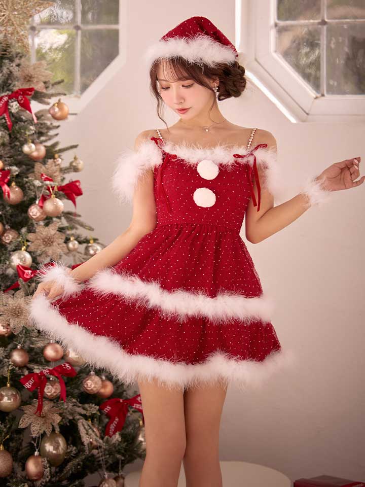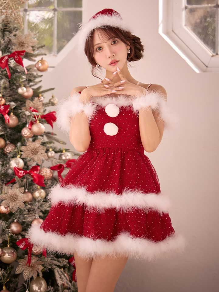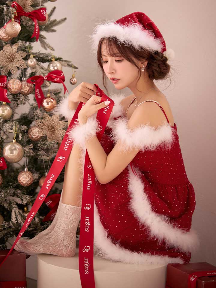 【予約 / 11月下旬発送予定】【送料無料!】【サンタ】サイドリボンストーンフリルサンタコスプレ【コスプレ4点セット】【XS-XLサイズ/1カラー】[OF01] [SS-204-SB-dzw-R-25RK]