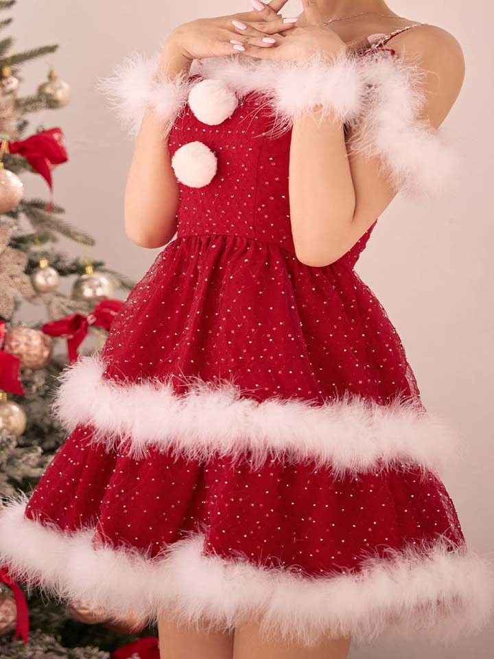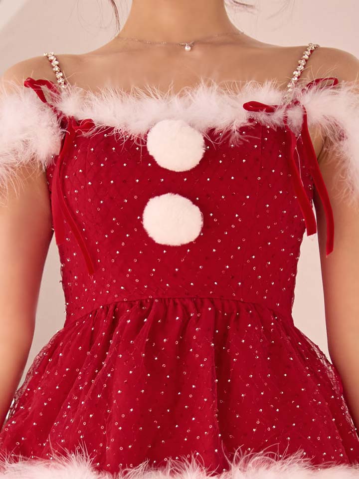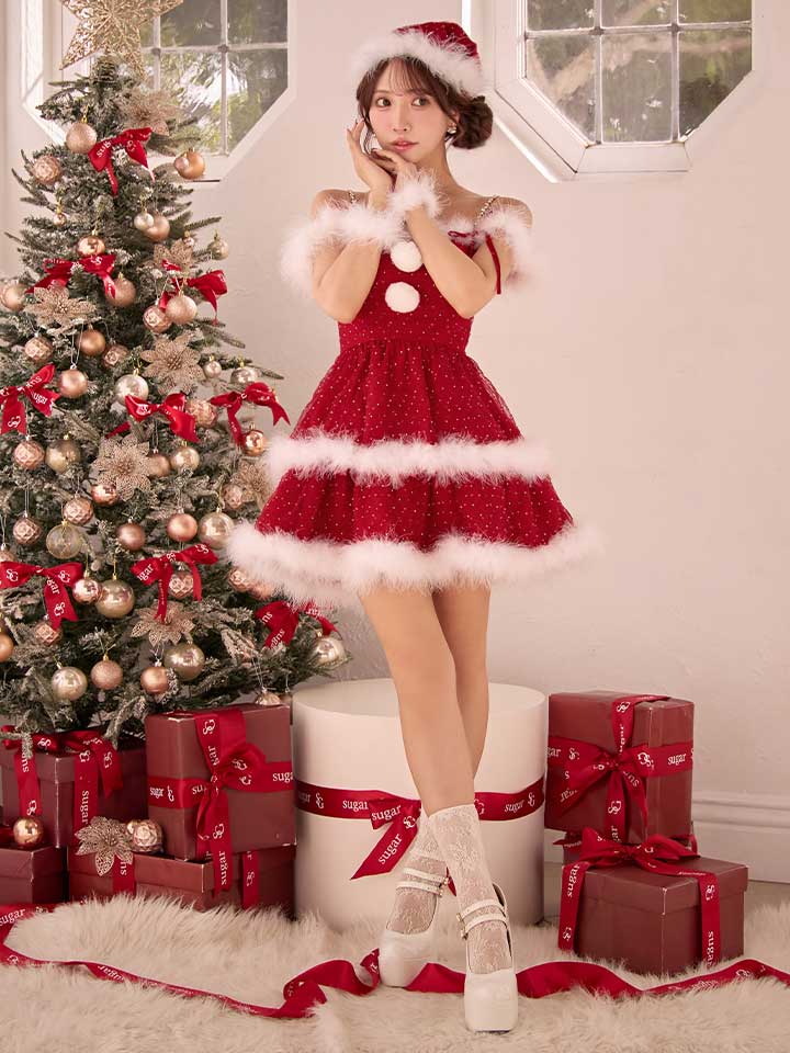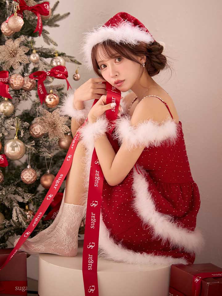 キュートなリボンに重なったフリルが揺れる主役級サンタ。
