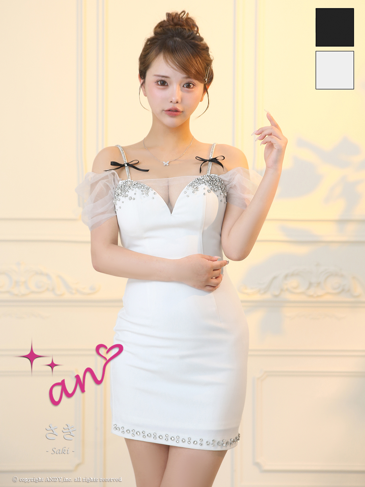 XSサイズあり【an /アン】 リボン/ シアー/ ビジュー/ キャミ/ タイト/ ミニドレス/ キャバドレス[OF05] [AOC4021-B-2511]