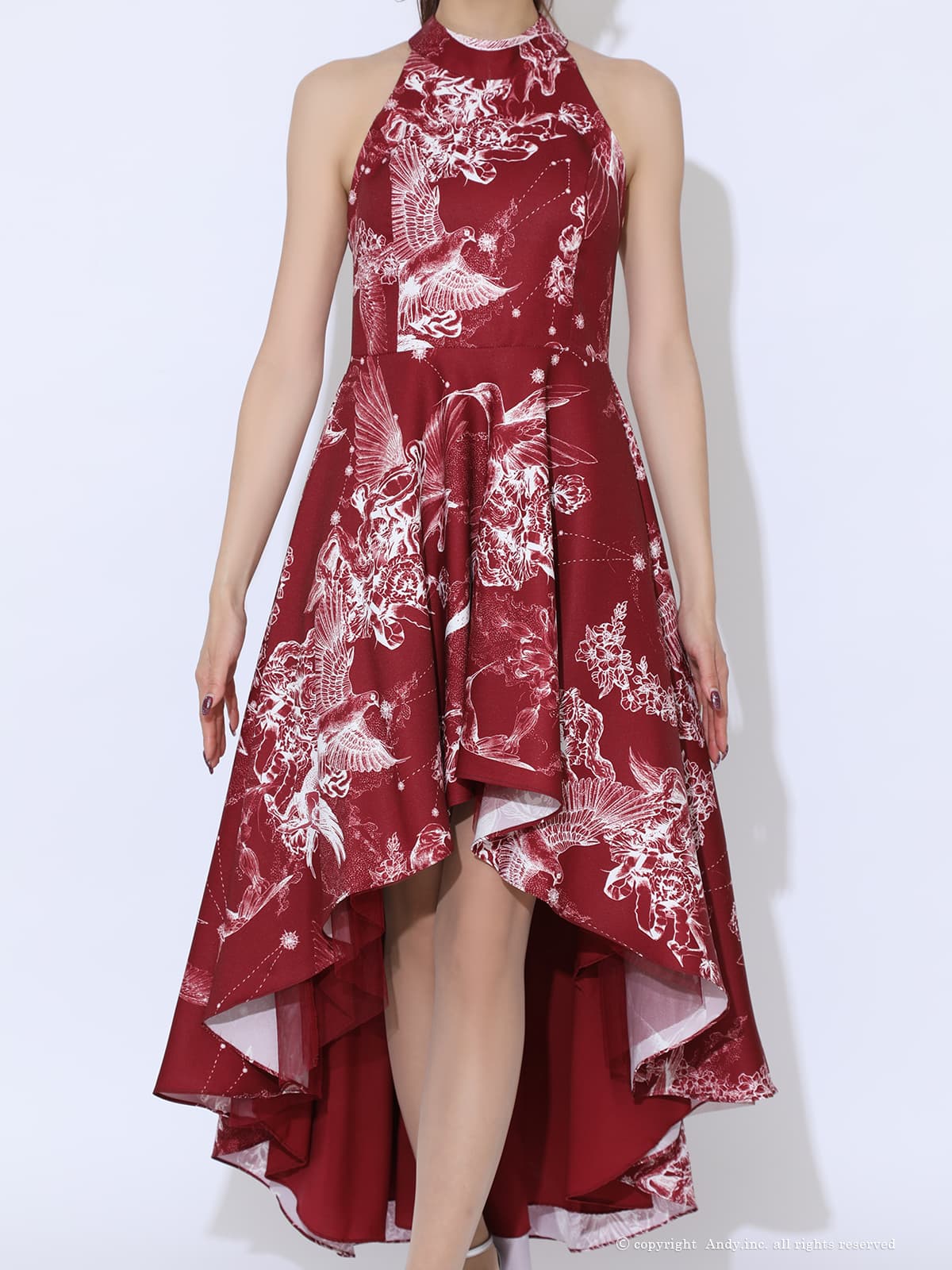 XSサイズあり【ANDY/アンディ】テールカット/ バックオープン/ パニエ付き/ アメスリ/ クラシカルプリント/ シフォン/ フレア/ ミディアムドレス/ ワンピース/ キャバドレス[OF05] [ON2949-WNVxPega-2511]