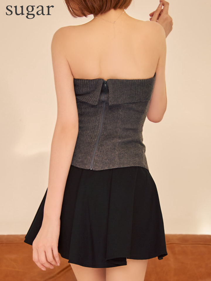 クールでセクシーなベアトップ&フレアスカートのセットアップドレス。