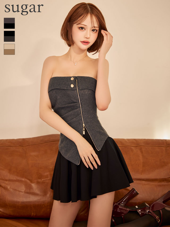 XSサイズあり【Glossy/グロッシー】ベアトップ/ アシンメトリー/ セットアップ/ フレア/ ミニドレス/ キャバドレス[OF08] [GL4607-BE-S251114]