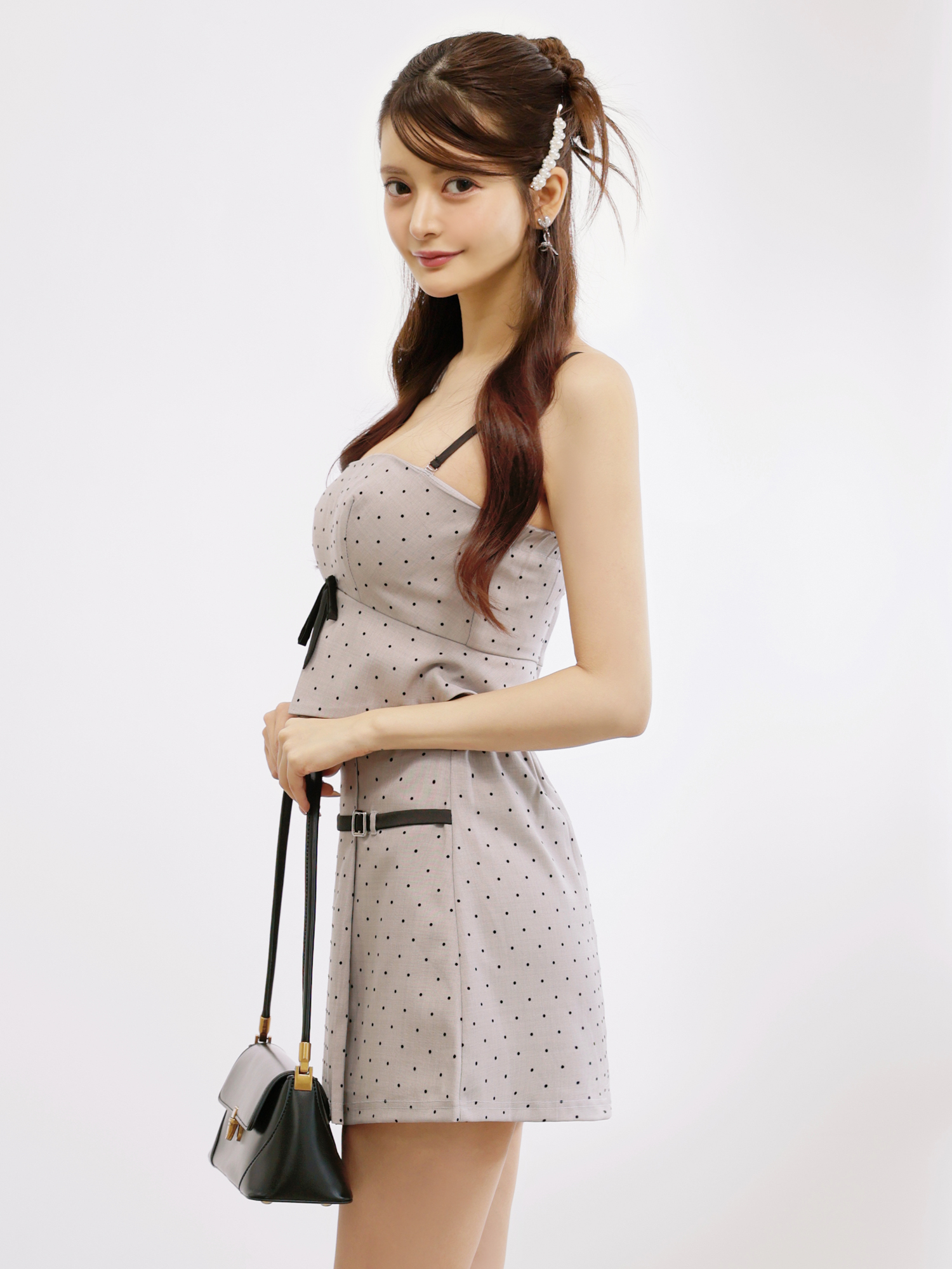 【予約商品/12月上旬-12月中旬発送予定】XSサイズあり【ANGEL R/エンジェルアール】ベアトップ / フロントリボン / ベルト / ドット / セパレート / フレア / マイクロミニドレス / キャバドレス[OF2] [AR25256-BE-2511]