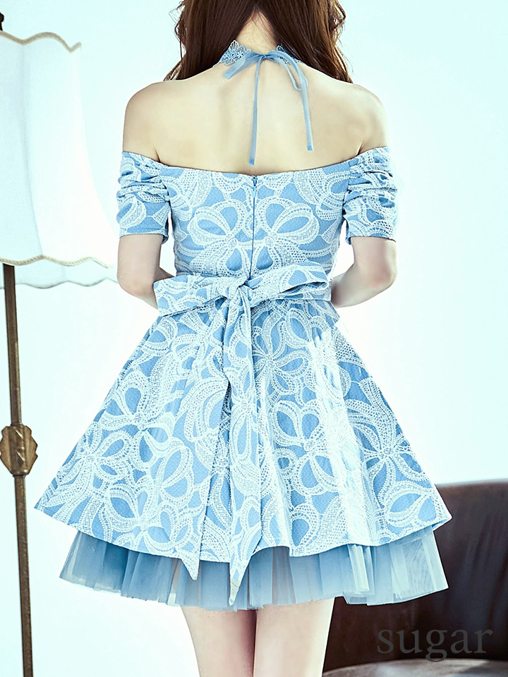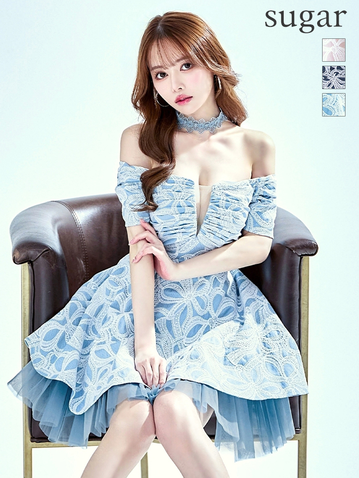 XS-Lサイズあり【Donia Quinn / ドニアクイーン】 オフショル/ 刺繍/ リボンモチーフ/ チョーカー付き/ バストシアー/ フレア/ ミニドレス/ キャバドレス[OF05] [Q60239Y-IVB-S2511]