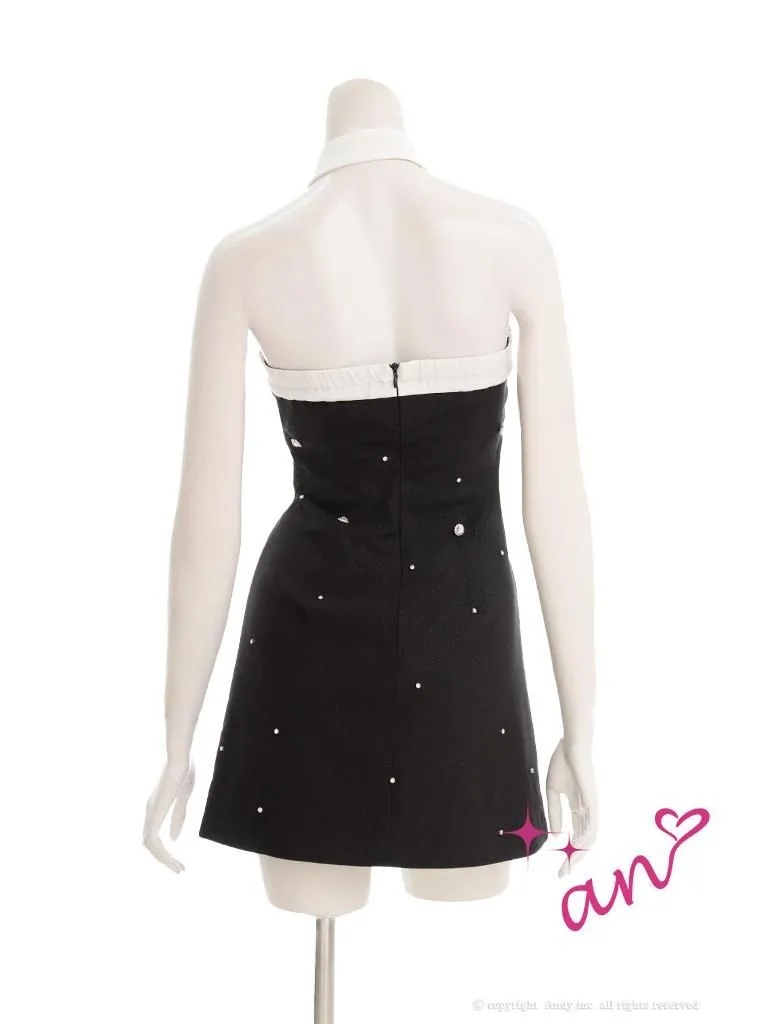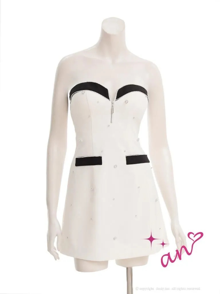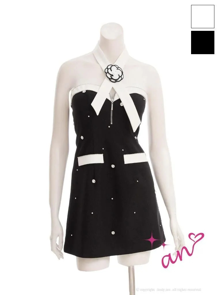 XSサイズあり【an/アン】アクセサリー付き/ ラメ/ ベアトップ/ 立体フラワー/ ビジュー/ フレア/ ミニドレス/ キャバドレス[OF05] [AOC4020-B-2511]