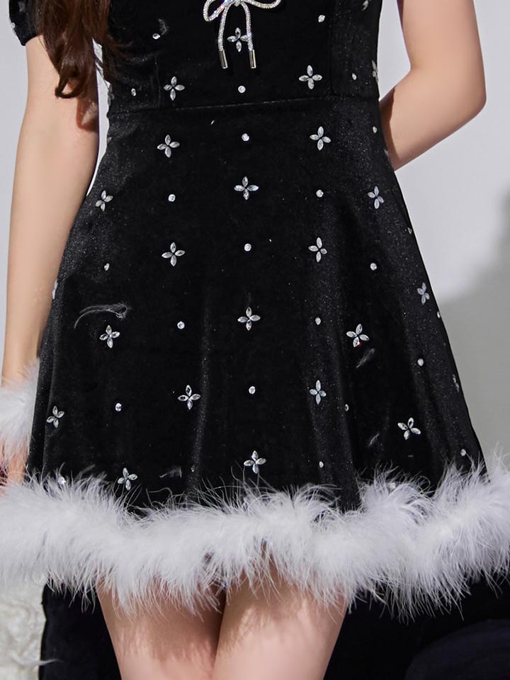 【即日発送】【サンタ】リボンベロア半袖ワンピースサンタコスプレ【コスプレ3点セット】【S-Lサイズ/2カラー】[OF03] [SS-165-YN-dzw-R-25MM]