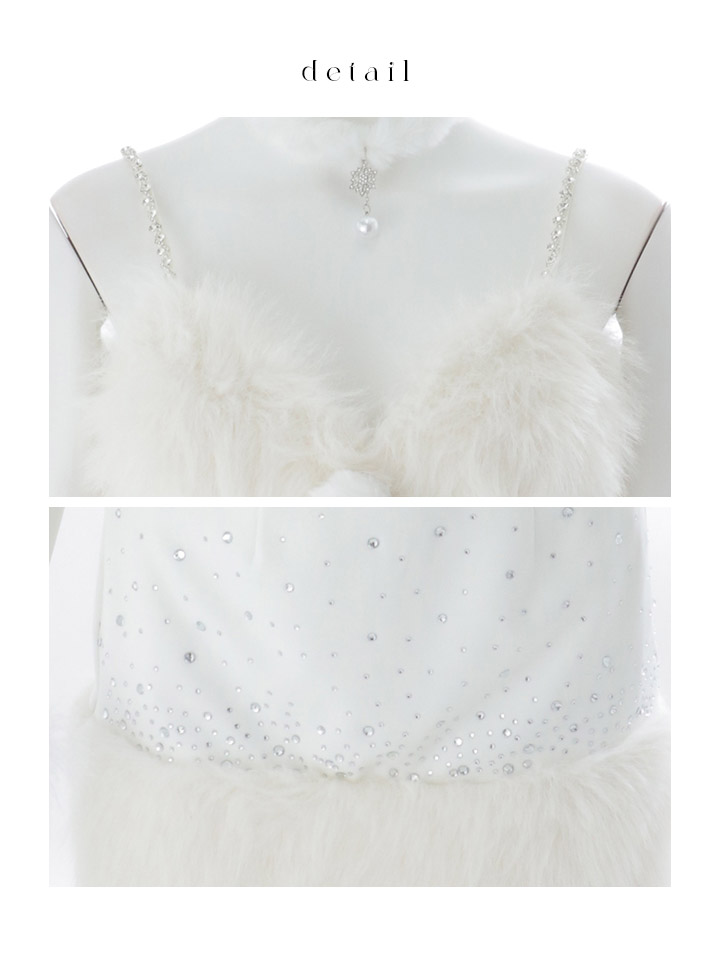 白 ホワイト ミニ ノースリーブ タイトスカート ファー 雪だるま ビジュー