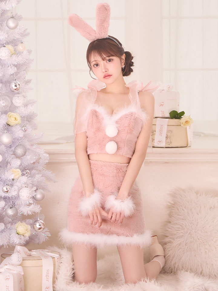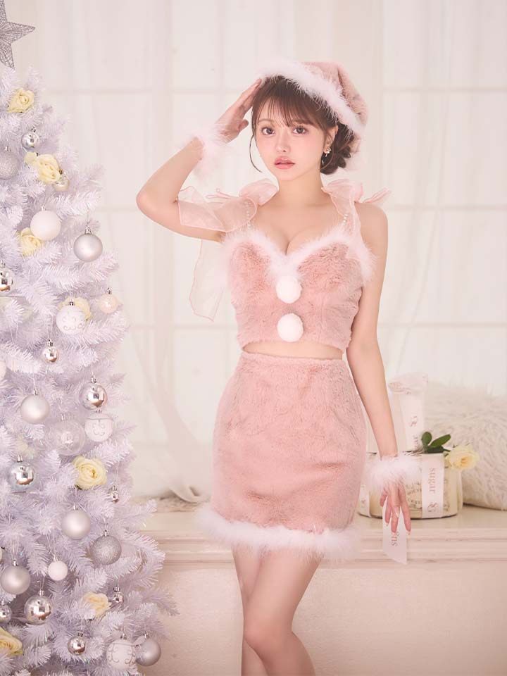 ふわふわのファーをあしらった大人可愛いサンタセットアップ。