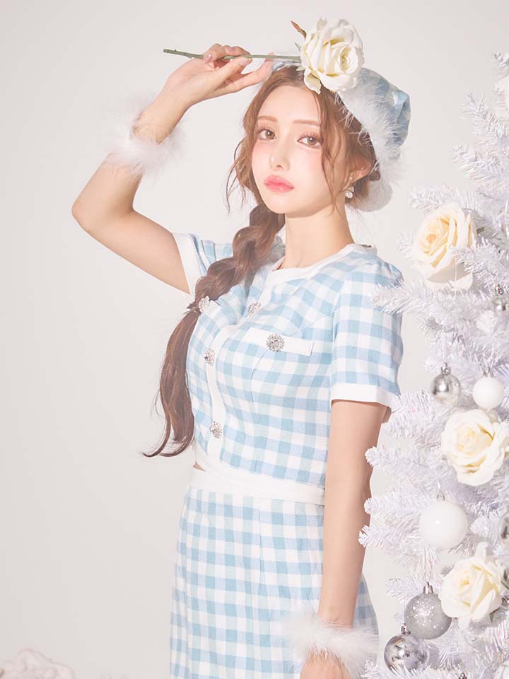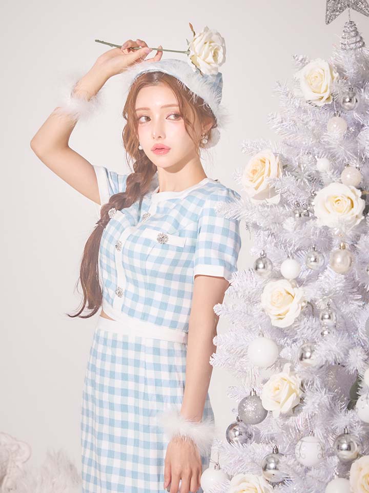 #タイト #セットアップ #半袖 #ギンガムチェック #チェック柄 #ブルー #クリスマス #パーティ #サンタコス #サンタさん