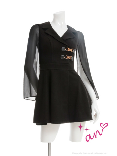 XSサイズあり【an /アン】襟付き/ 取り外し可能/ シンプル/ 2way/ ノースリーブ/ プリーツ/ フレア/ ロングスリーブ/ ミニドレス/ シースルー/ キャバドレス[OF05] [AOC4023-NV-2511]