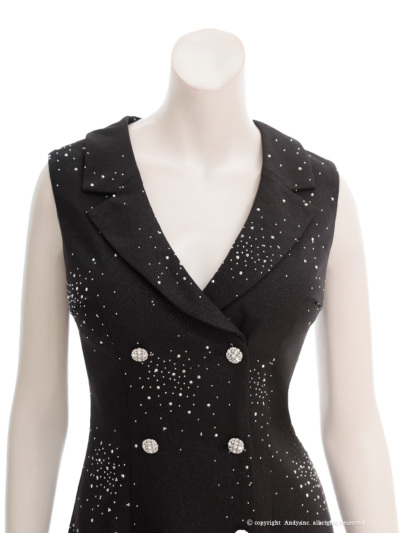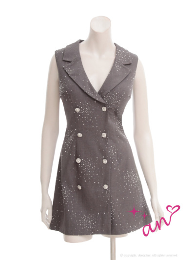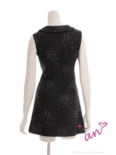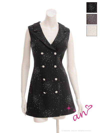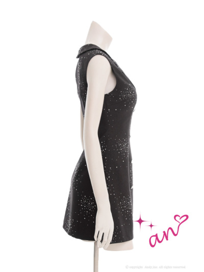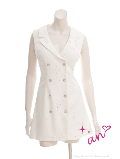 XSサイズあり【an /アン】襟付き/ ボタン/ シンプル/ ビジュー/ プリーツ/ フレア/ ノースリーブ/ ミニドレス/ キャバドレス[OF05] [AOC4022-W-2511]