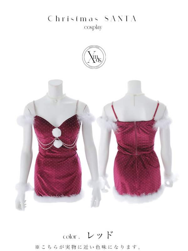 【即日発送】【サンタ】 ベロアストーンビジューチェーンセットアップサンタコスプレ【コスプレ6点セット】【XS-Mサイズ/2カラー】[OF03] [SS-184-YN-dzw-R-25MA]