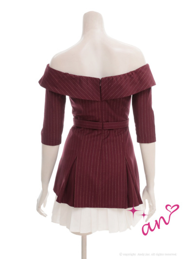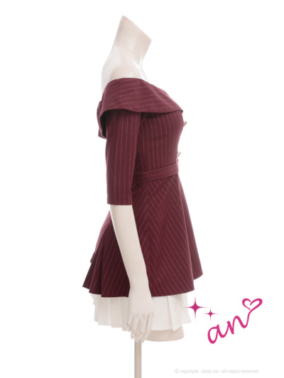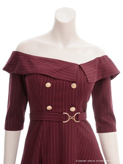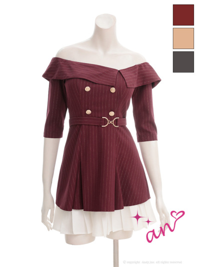 XSサイズあり【an /アン】ベルト/ オフショル/ ハーフスリーブ/ ストライプ/ ボタン/ フレア/ ワンピース/ ミニドレス/ キャバドレス[OF05] [AOC4018-BE-2511]