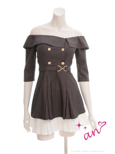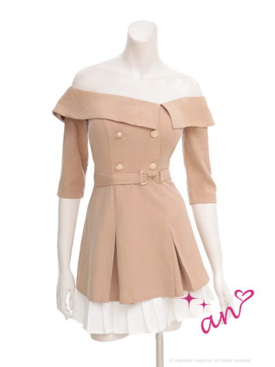 オフショルデザインxボタンxベルトの組み合わせも大人可愛い◎