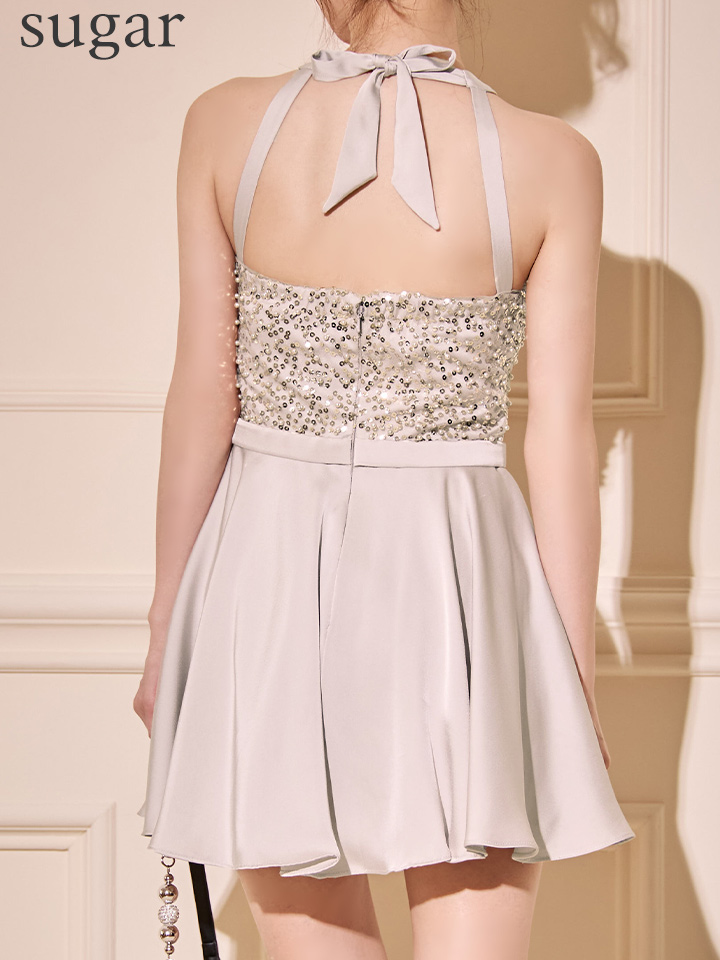 【ANGEL R/エンジェルアール】ホルターネック/ スパンコール/ ビジュー/ フレア/ マイクロミニドレス/ キャバドレス[OF2] [AR25254-BE-S251126]