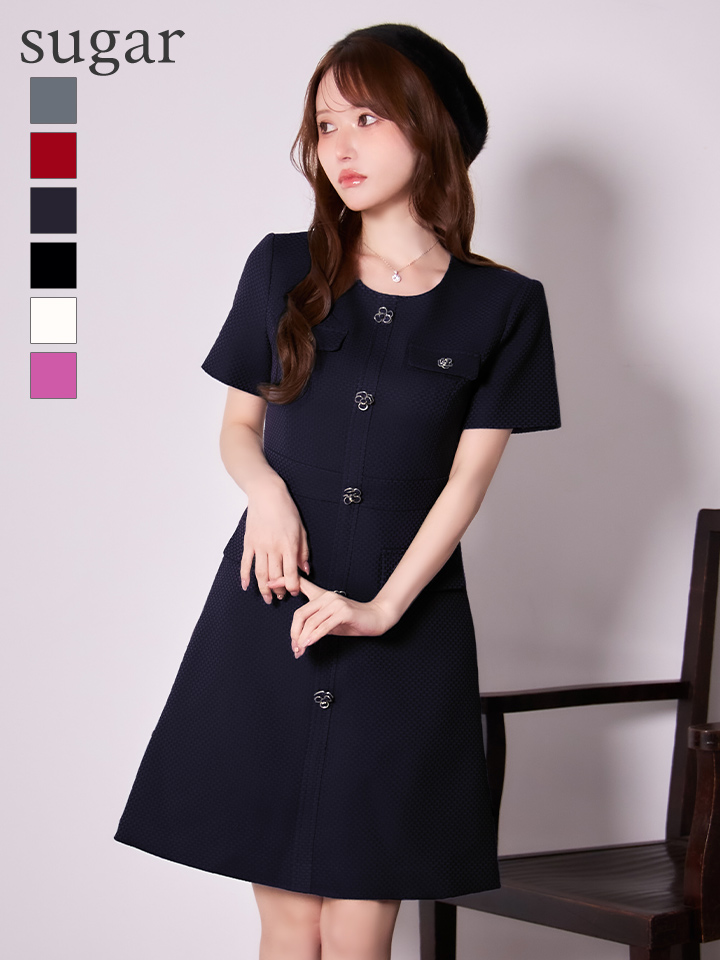 XS-Lサイズあり【ERUKEI エルケイ】ボタン/ Aライン/ 半袖/ 台形スカート/ フレア/ ワンピース/ ミニドレス/ キャバドレス[OF2] [LKE2618-NV-S251119]