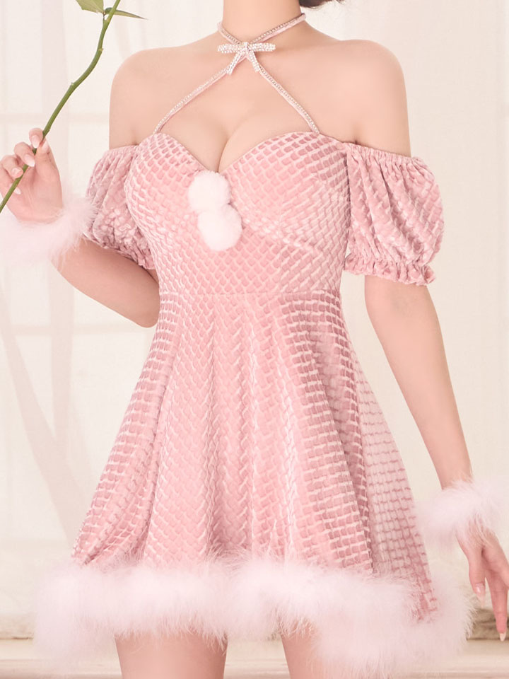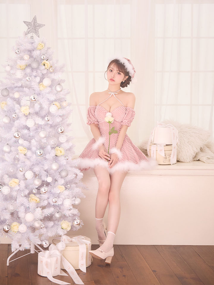 クロスネックがセクシーさを演出する、オフショルサンタコスプレ。