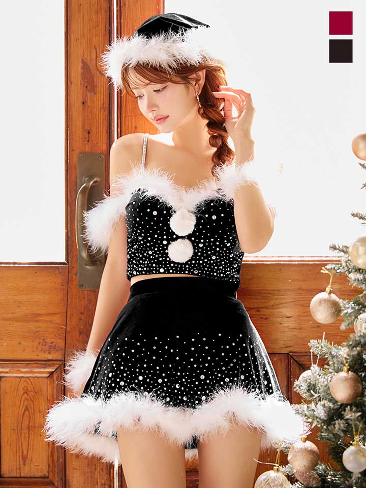 高級感のあるベロア素材のセットアップサンタコスプレ。