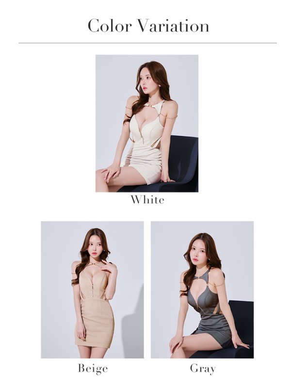 【Jessica/ジェシカ】ゴールドチェーン/ バストジップ/ ラメ/ カットアウト/ シアー/ ノースリーブ/ タイト/ ミニドレス/ キャバドレス【HC03】 [JS5321-W-S2511]
