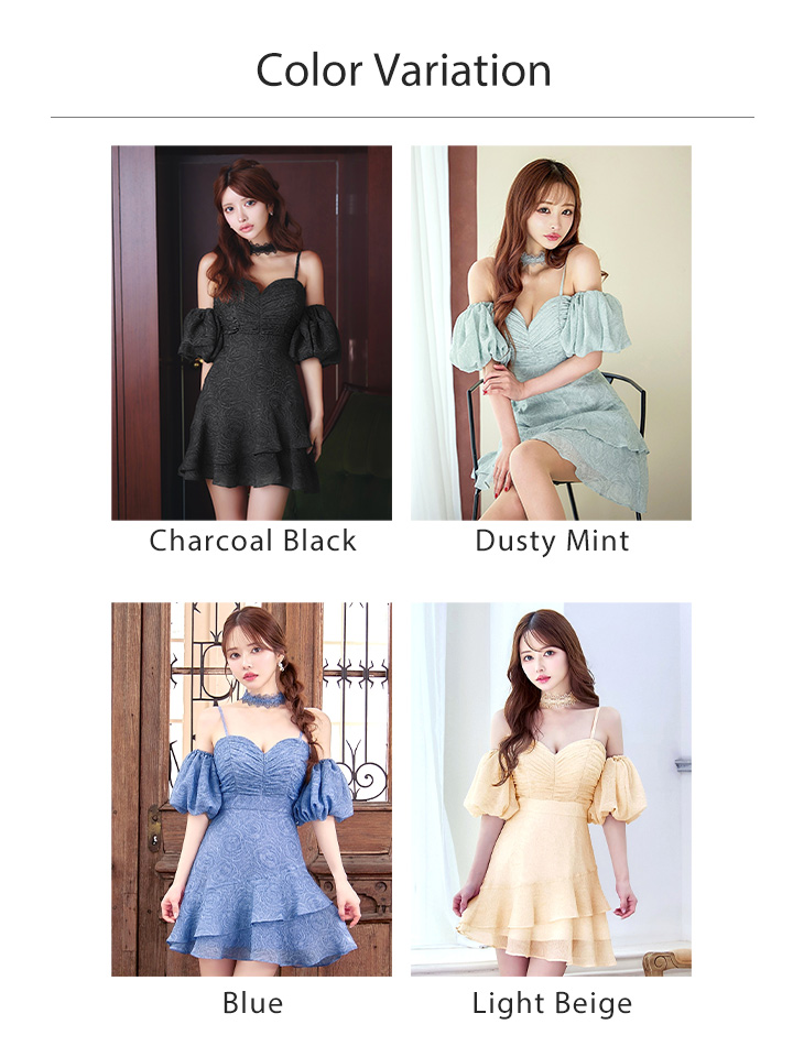 XS-Lサイズあり【Donia Quinn / ドニアクイーン】 オフショル/ リップル生地/ 花柄/ チョーカー付き/ バストギャザー/ フレア/ ミニドレス/ キャバドレス[OF05] [Q60236Y-LBE-S2511]