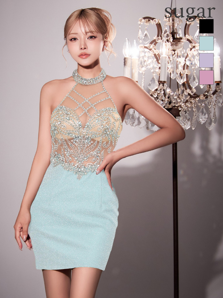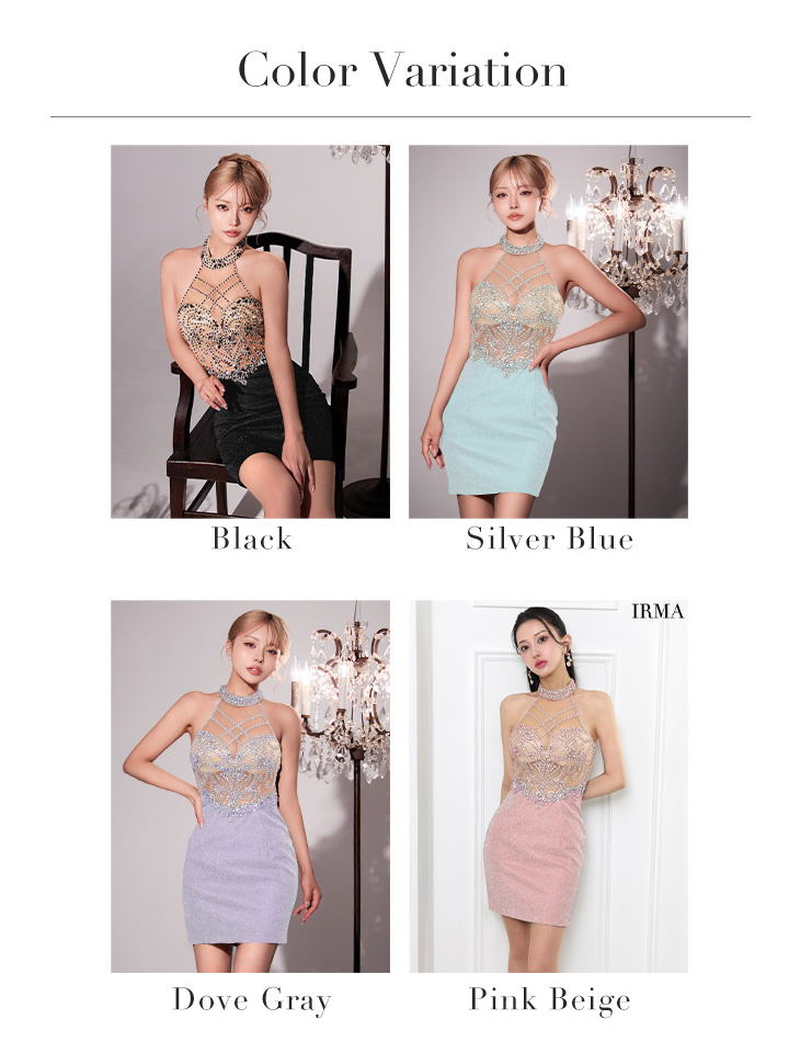 XSサイズあり【IRMA/イルマ】ビジュー/ 刺繍/ ホルターネック/ シアー/ ラメ/ ストレッチ/ タイト/ ミニドレス/ キャバドレス[OF2A]【一部予約商品/12月下旬発送予定】 [51811-IR-B-S251126]