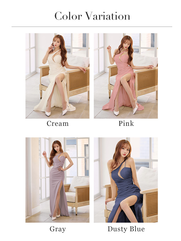 大胆なロングスリットから美脚を覗かせて、大人セクシーな一着です。