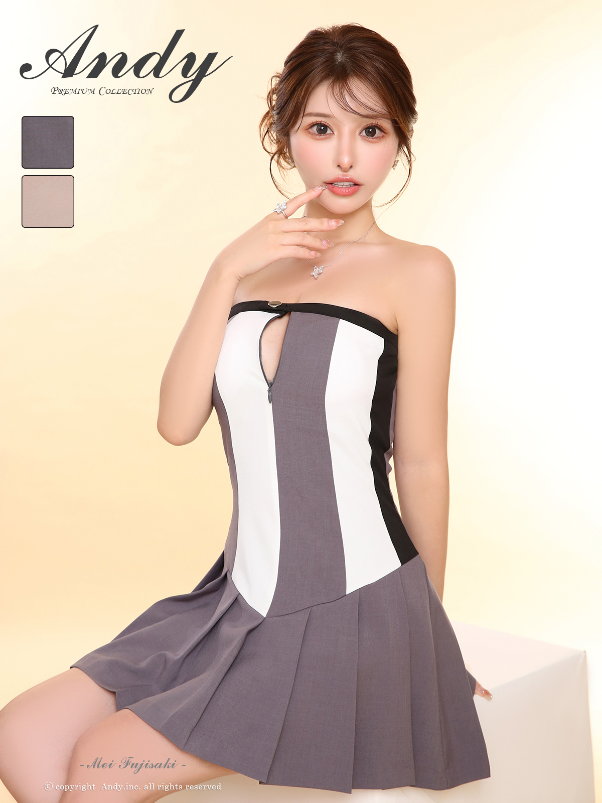 XSサイズあり【ANDY/アンディ】ベア/ プリーツスカート/ フロントジッパー/ バイカラー/ Aライン/ フレア/ ワンピース/ ミニドレス/ キャバドレス[OF05] [ON3031-GY-2511]