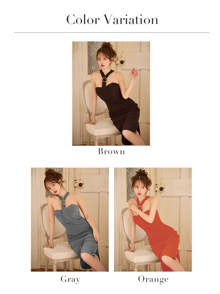 XSサイズあり【Veautt/ヴュート】 ホルターネック/ リング/ ドレープ/ ウエストマーク/ サイドファスナー/ タイト/ ミディアムドレス/ キャバドレス[OF2] [VT082524-OR-S251127]
