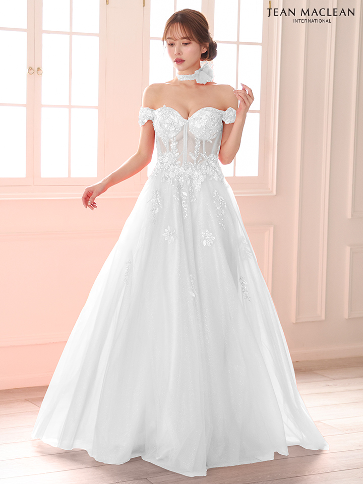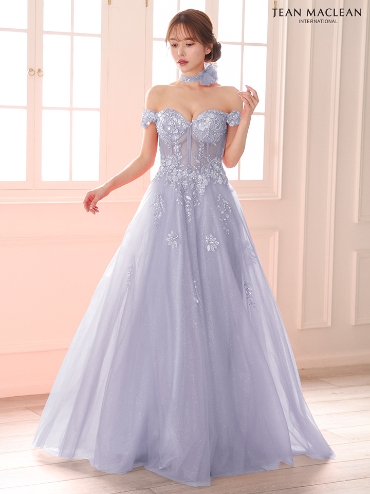 【JEAN MACLEAN/ジャンマクレーン】チョーカー付き/ オフショル/ シアー/ スパンコール/ レース/ フラワーモチーフ/ フレア/ Aライン/ プリンセス/ ロングドレス/ キャバドレス long[OF2A] [51979-JM-B-2511]