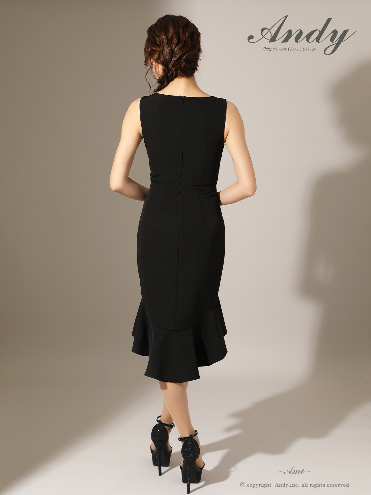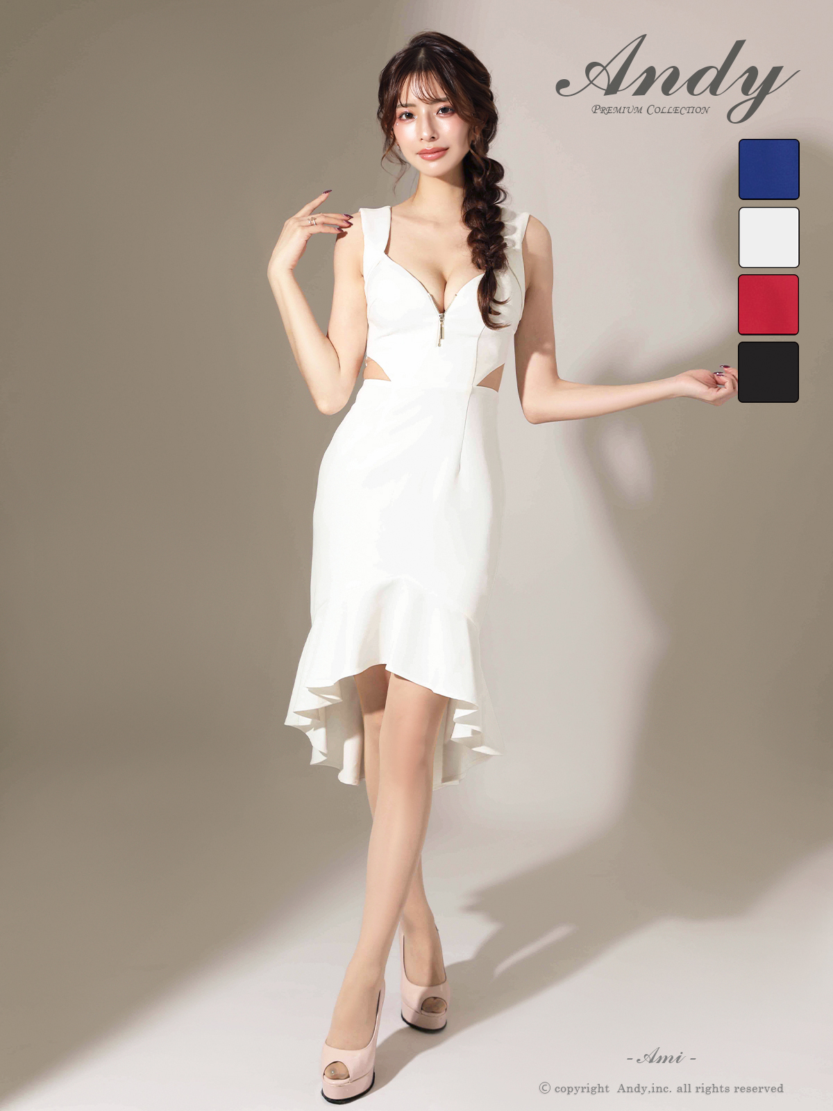 【ANDY/アンディ】フロントジップ/ ウエストカット/ フリル/ タイト/ ミディアムドレス/ キャバドレス[OF05] [ON3029-W-2511]