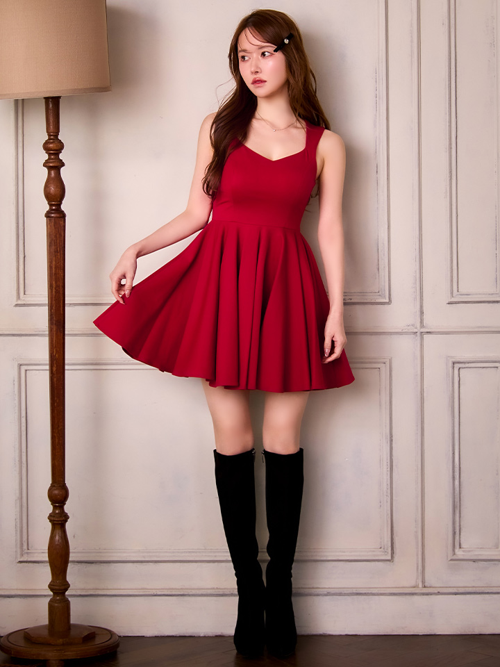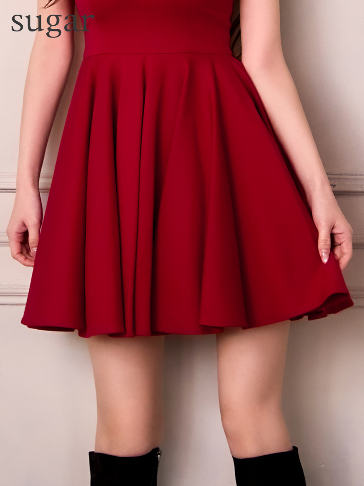 きゅっと引き締まったウエストとふんわりフレアでドーリーな印象に。